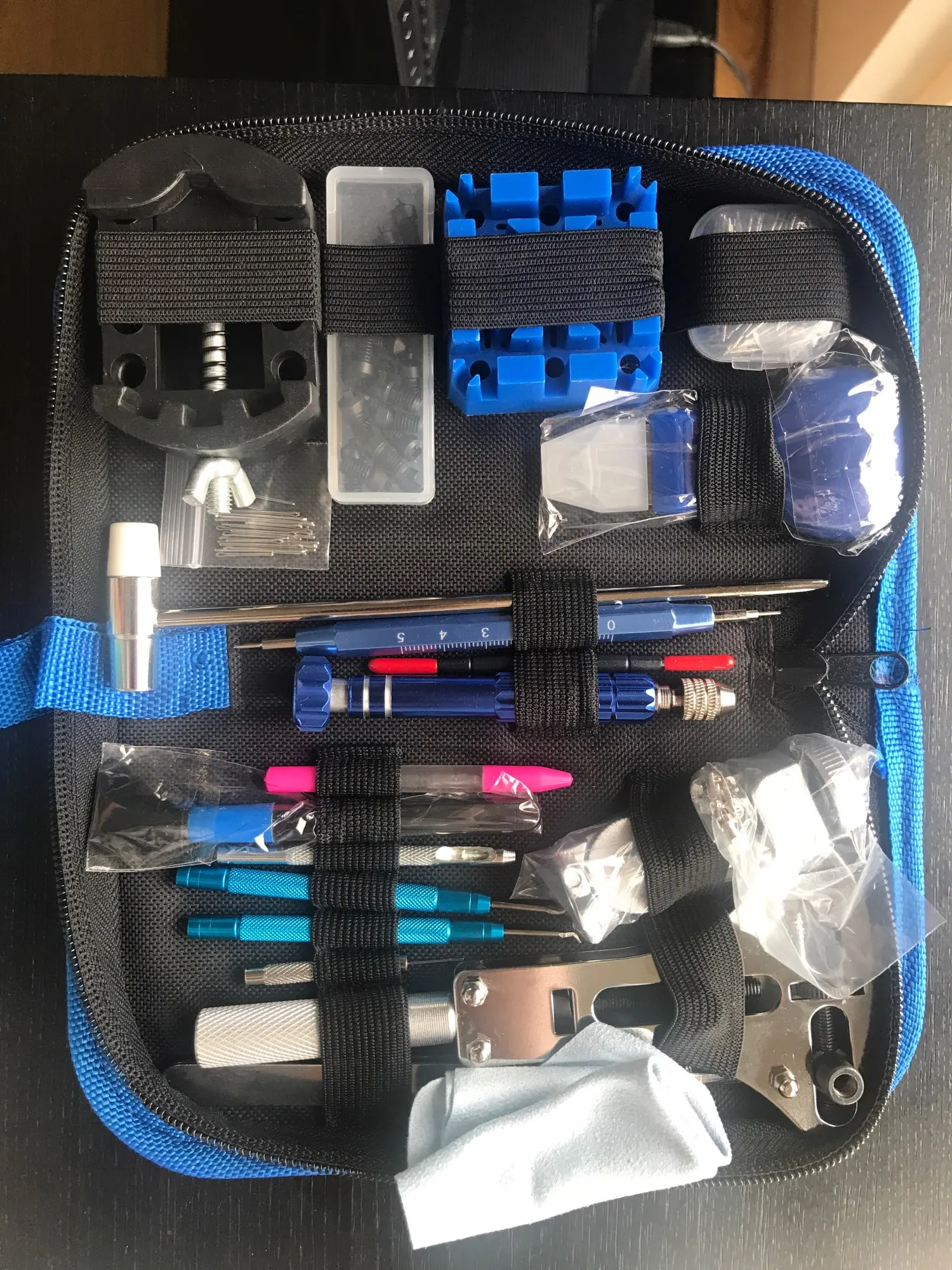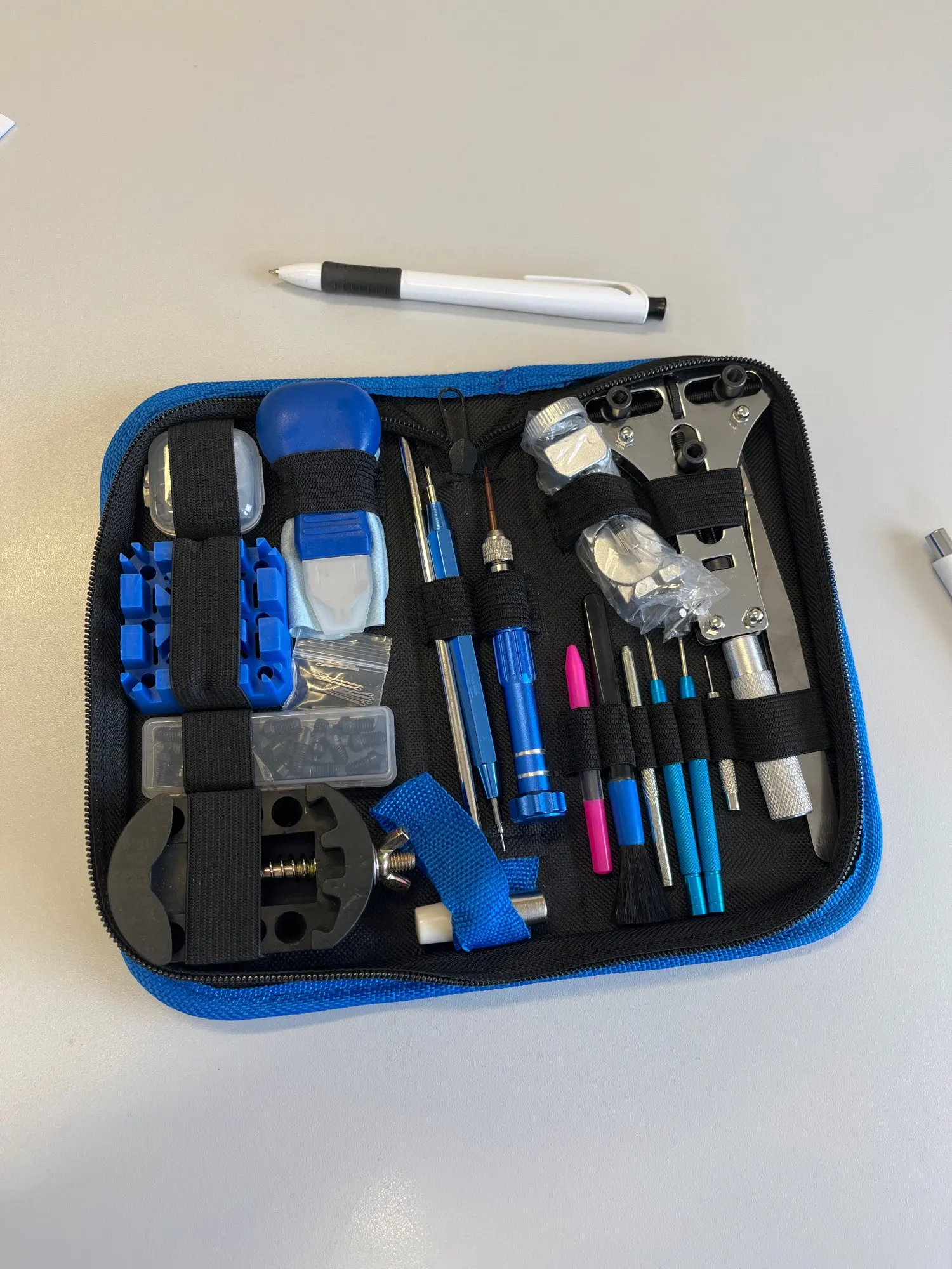 Очень полный, именно то, что появляется на изображении. Хорошее качество корпуса. Очень полезно для смены ремней, батарей и немного больше.