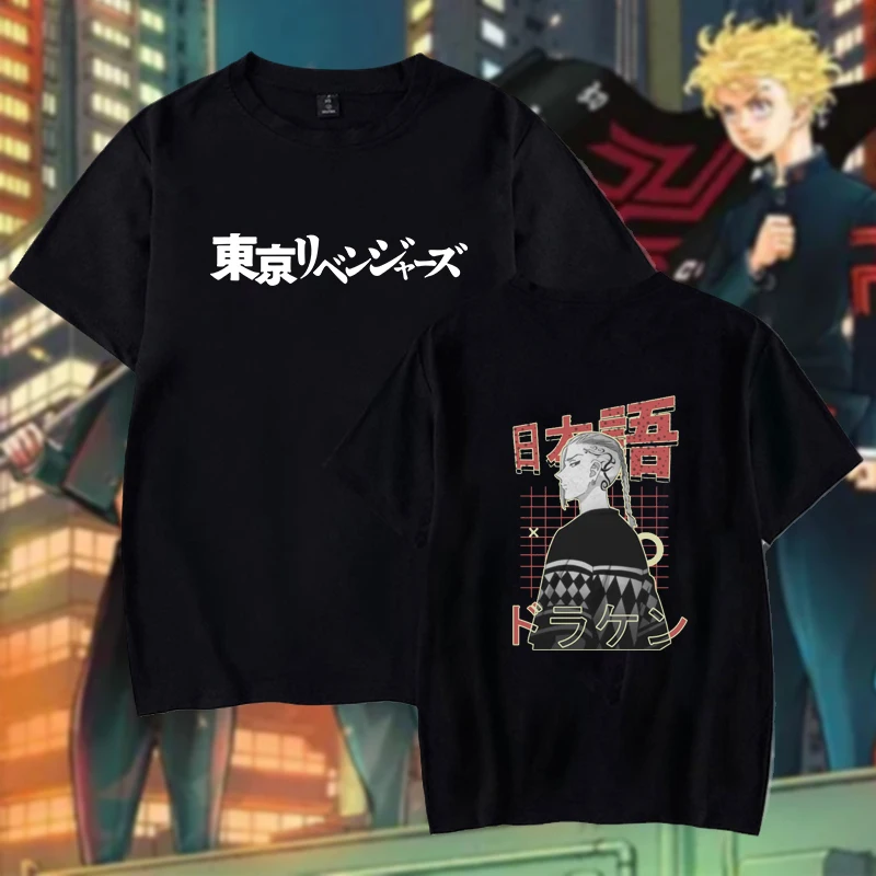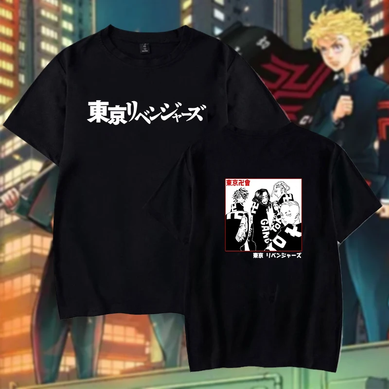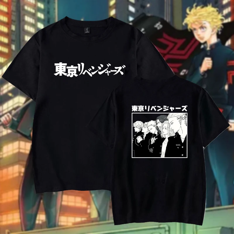 Футболка мужская с японским аниме принтом Токийский манга, черный топ с коротким рукавом в стиле Харадзюку, летняя одежда