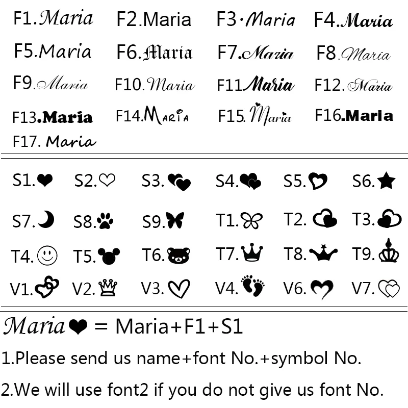 3. Если вы хотите выбрать шрифт и символ, пожалуйста, сообщите намНомер шрифта.ИСимвол № ..