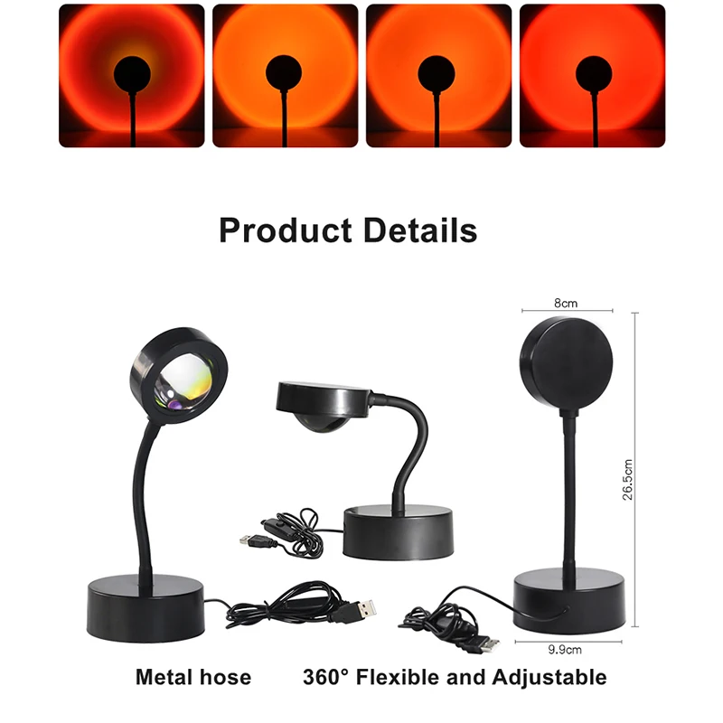 Атмосферная Радужная лампа С закатом, регулируемая и Регулируемая лампа с проекцией заката для спальни, ночник с разными кругами и цветами