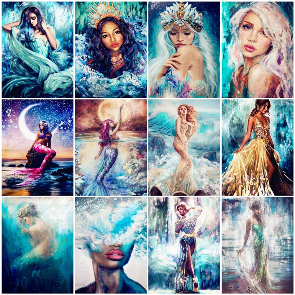 Картина 5D "сделай сам" с волшебным мультяшным изображением русалки, квадратнаякруглая Алмазная вышивка, Набор для вышивки крестиком, мозаика, домашний декор