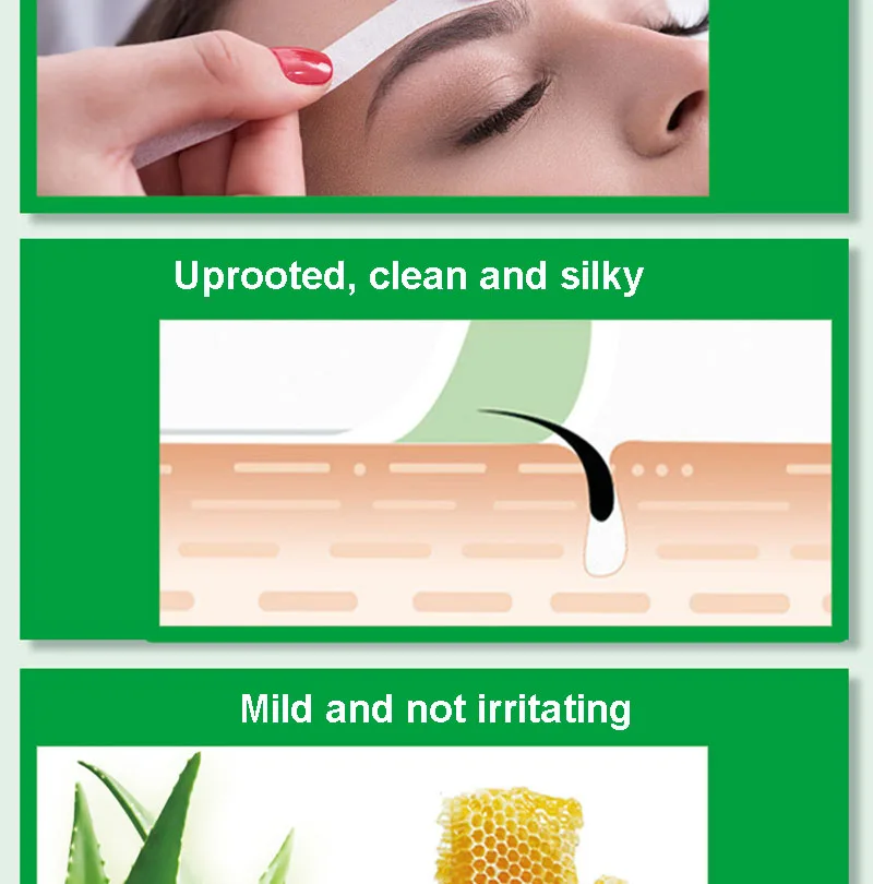 Материал: нетканый материалДля ног, тела и волос на лицеНе нужно нагреваться перед использованием.Подходит на все виды кожи.Излишки воска можно удалить с помощью ватной подкладки или ткани, увлажненной маслом ребенка.Холодные восковые полоски обеспечивают мягкое и безопасное нанесение, не оставляя волосы на коже в течение 4 недель.