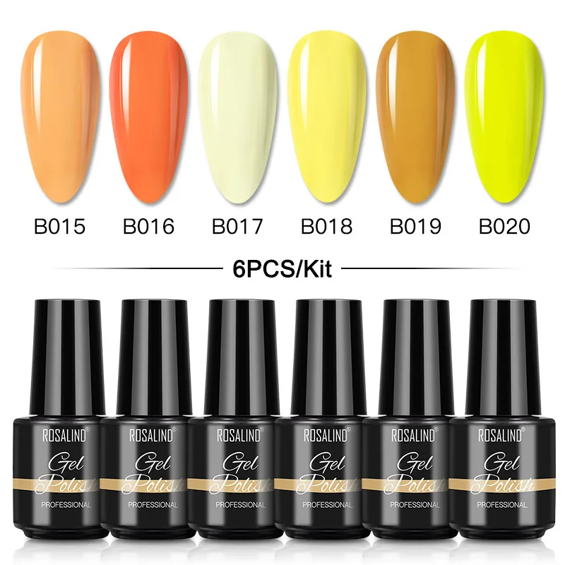 Набор цветных неоновых гель-лаков ROSALIND, набор гибридных гель-лаков для маникюра, отмачиваемая основа и топ, светодиодная лампа для дизайна ногтей