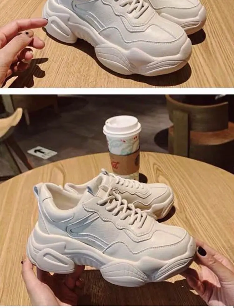 Женские массивные кроссовки, Вулканизированная подошва, на шнуровке, Повседневная модная обувь для папы, белые
