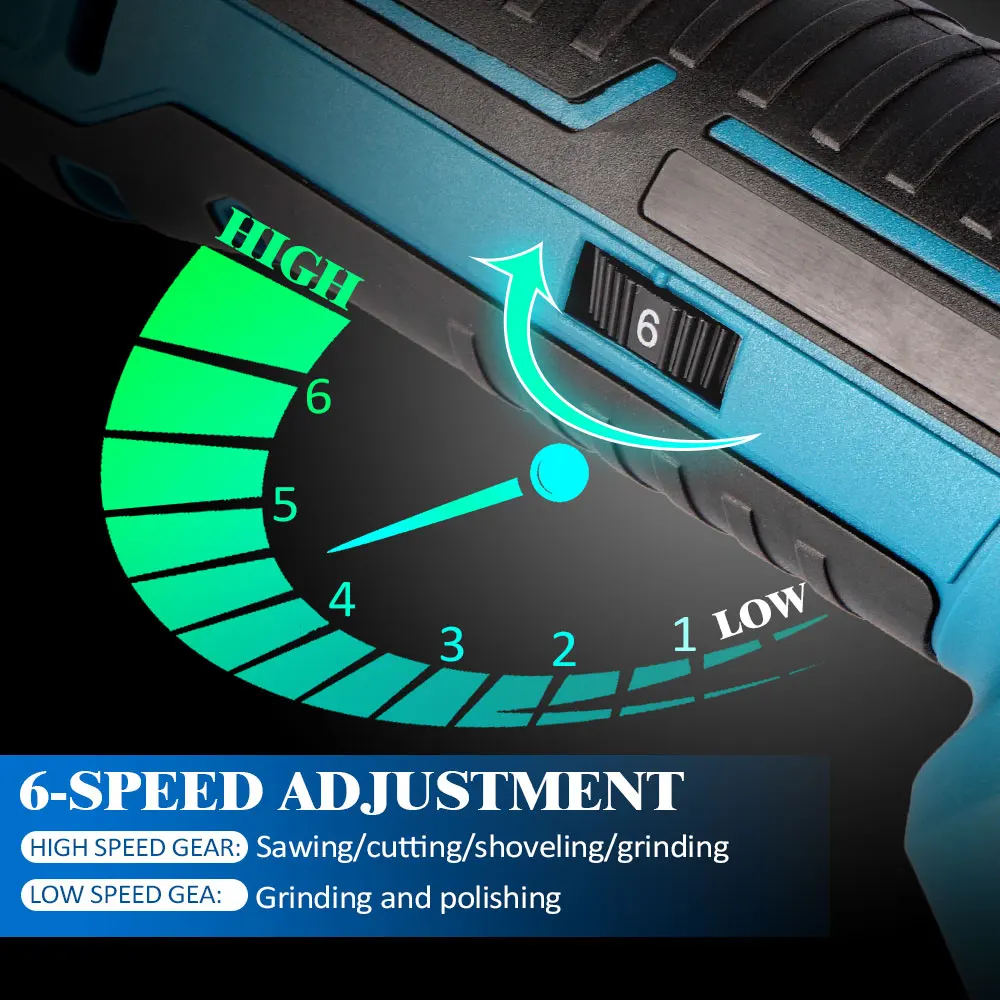 Мощность: 1200 ВтМатериал: АБС + металлДлина направляющей пластины: 6 дюймовСкорость без нагрузки: 11000 об/минВес: 870 г (батарея в комплект не входит!)Вырежьте 10 см Дерево легко за 3 секунды