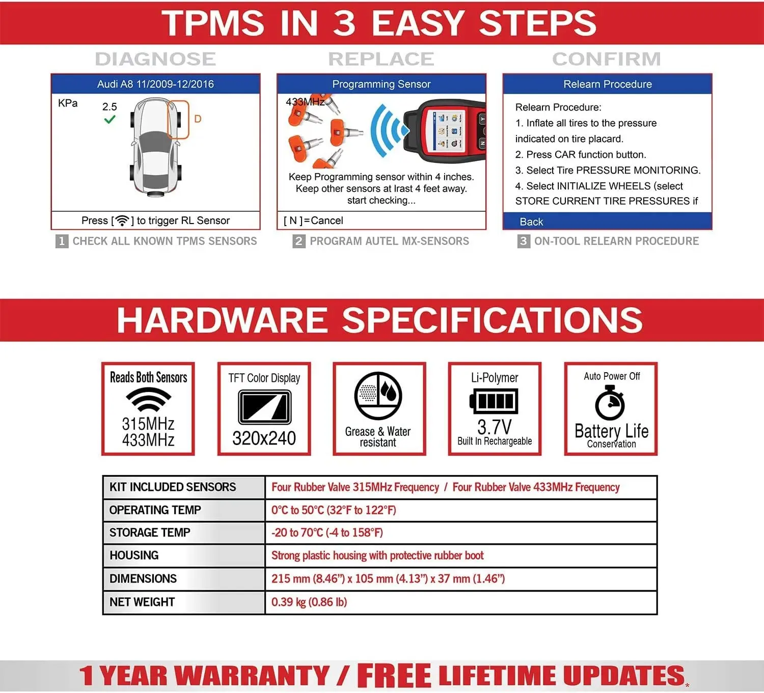 Программа сканера Autel MaxiTPMS TS508, MX-Sensor, 433 МГц3 хгц. TPMS, инструменты для ремонта шин