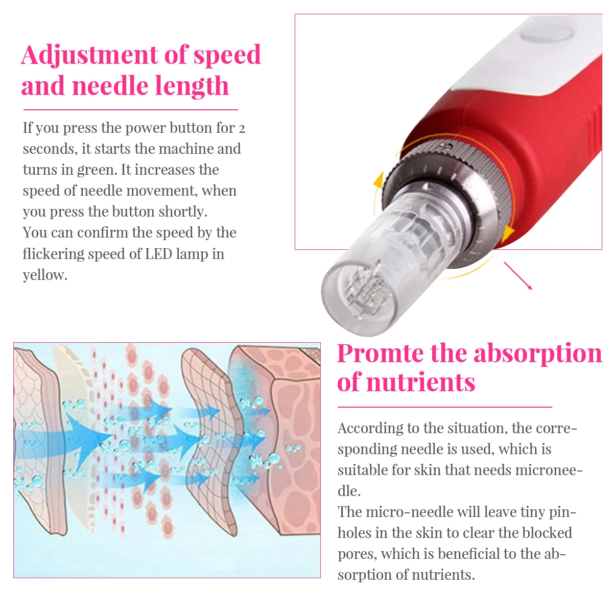 Меньше шума, красиво упаковано, 5-ступенчатая с регулируемой скоростьюПодходит для 1PIN игл, 3PIN игл, 5PIN игл, 7PIN игл, 9PIN игл, 12PIN игл, 24PIN игл, 36PIN игл, 3D nano квадратная игла, nano 5D квадратная игла, круглая наноигольчатая нанометровая пластина, нанометровая кристаллическая несколько игл! Он может быть использован для микроосновы, губа, беременного трихиаза, беременной брови, беременных волос, удаления омертвевшей кожи, отшелушивания, пятнистости и ухода за лицом (увеличение поглощения, сделайте ваше лицо более ярким и гладким) В комплект входит:1xPen2х иглы (2 * 12PIN иглы)1X usb-кабель1х зарядное устройствоРуководство 1xuser