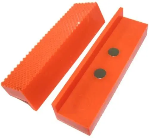 Мягкие губки останавливают обертывание клейкой ленты вокруг вашей тиски и защищают тонкий материал правильным образом с помощью этой пары Жесткой Резины, ребристые прокладки, сделанные для покрытия челюстей. Колодки имеют (2) редкоземельные магниты, встроенные внутри резины. Сделано для 4 "тиски, они измеряют 4-1/2" длинный x 1-1/8 "высокий x 3/8" толстый с губой вдоль одной длинной стороны. Резина толщиной 3/32"