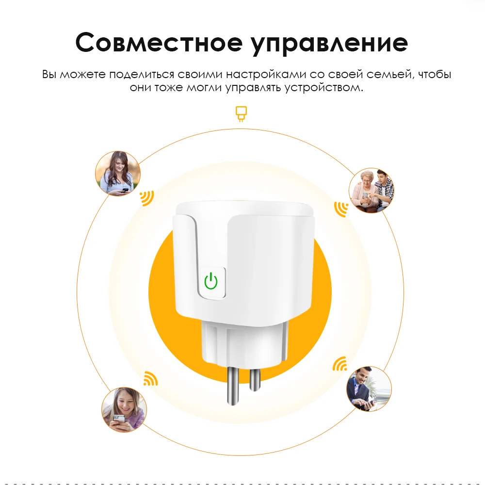 Умная розетка Tuya с поддержкой Wi-Fi, розеткой и таймером