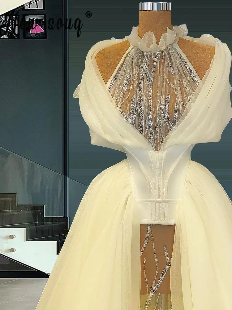 Элегантное белое вечернее платье 2021 простое Сверкающее длинное платье для выпускного вечера со съемным шлейфом Aso Ebi стильные вечерние платья с открытыми плечами