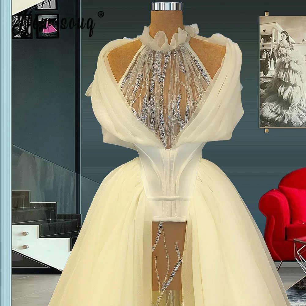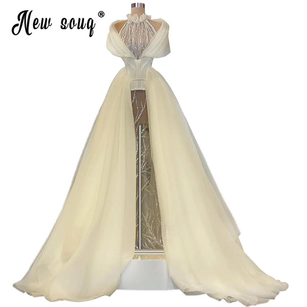 Мусульманские Вечерние платья 2021 с высоким воротом из бисера с ст...