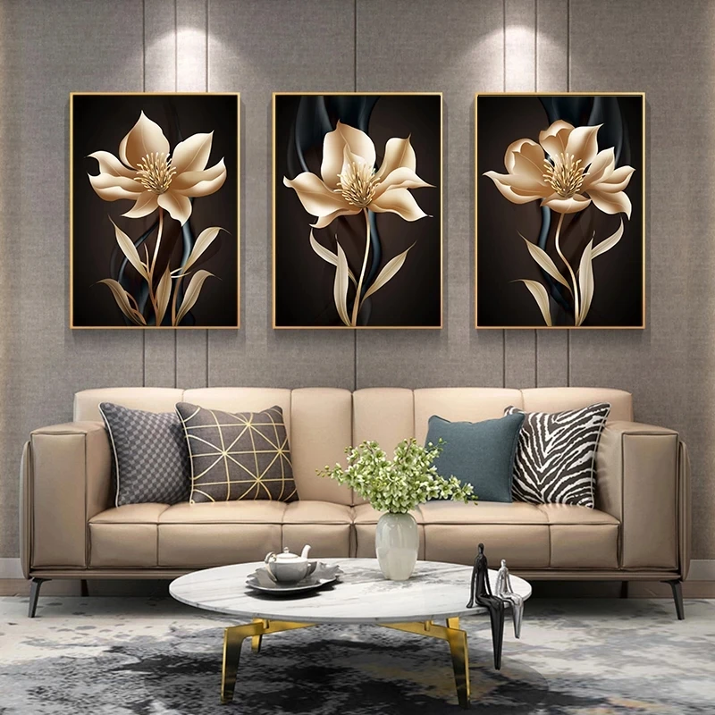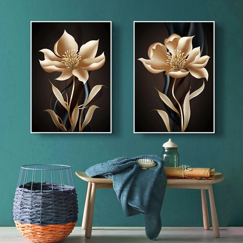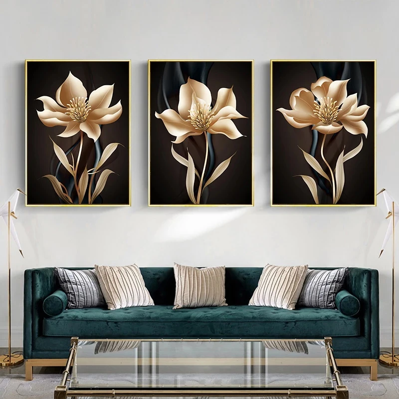 Постер с золотыми черными цветами, роскошная абстрактная Настенная картина на холсте, современная картина, настенные картины для гостиной, домашний декор