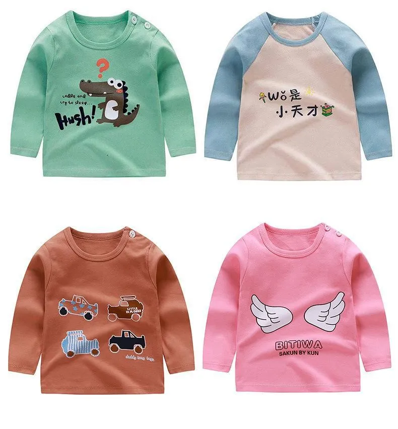 Осенняя одежда для малышей 6, 9, 12, 24 месяца, топы для маленьких девочек, одежда для отдыха, футболки для маленьких мальчиков, хлопковая Детская толстовка с мультяшным рисунком
