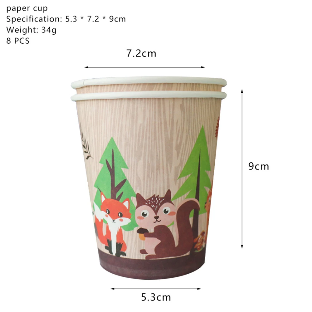 Набор одноразовой столовой посуды с изображением леса, животных