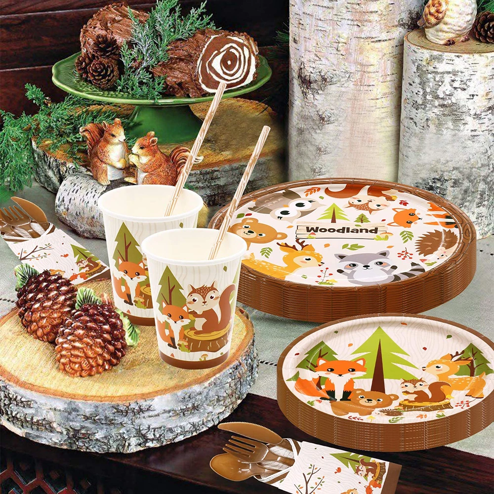 Одноразовая посуда с изображением лесных животных на день рождения,...