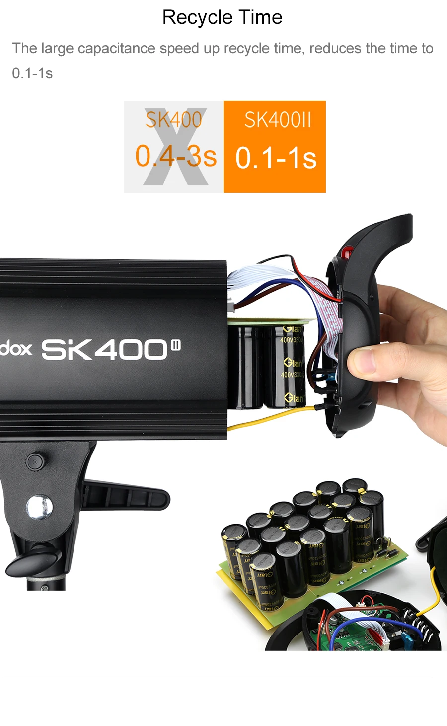Благодаря встроенной беспроводной системе X Godox 2,4G, серия SKII-это экономичный компактный стробоскоп для вспышки для съемки товаров электронной коммерции, портретной съемки и фото образа жизни. При небольшой и средней студийной съемке он может работать как при высосветильник, фосветильник щении или светильник щении волос.