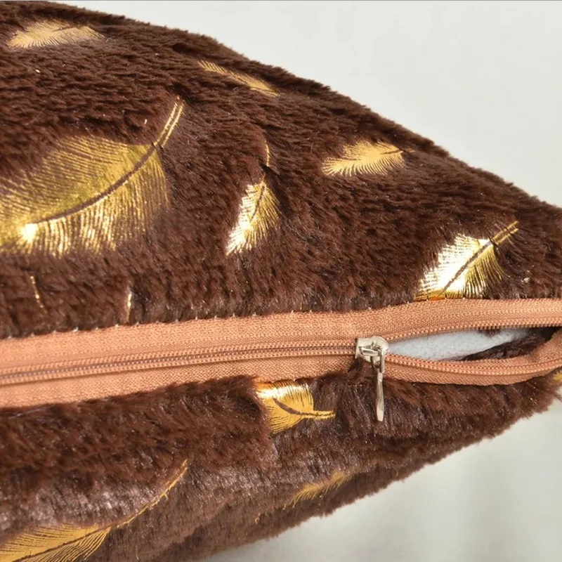 Наволочка для подушки из мягкого меха с перьями, наволочка с золоты...