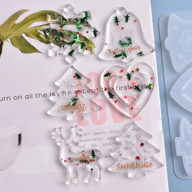 Брелок для новогодней елки 6 в 1, формы для эпоксидной смолы, снежи...