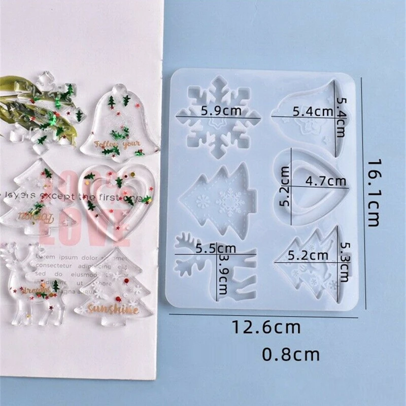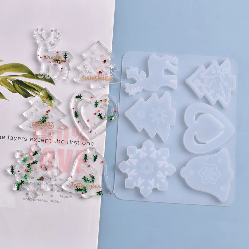 6 в 1 формы для эпоксидной смолы Рождественская елка, снежинка, лос...