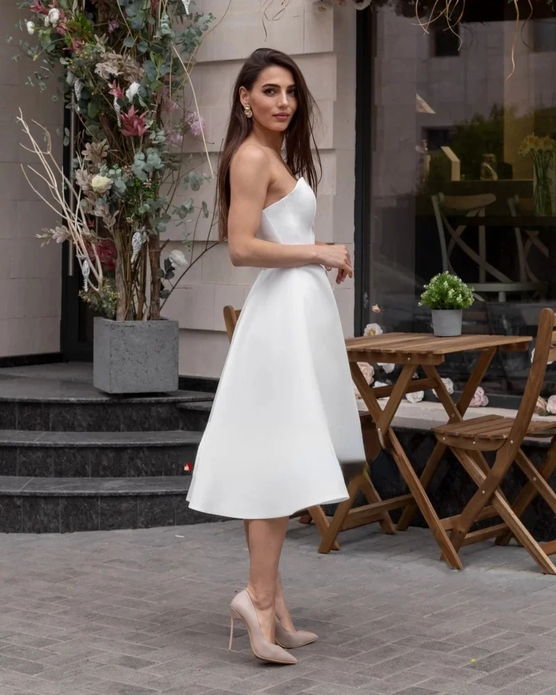 LUXIYIAO LO71 простой белый длиной до середины икры Свадебные плать...