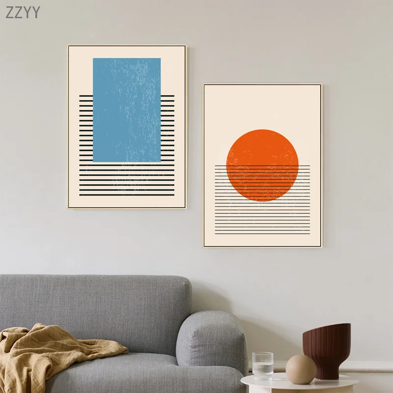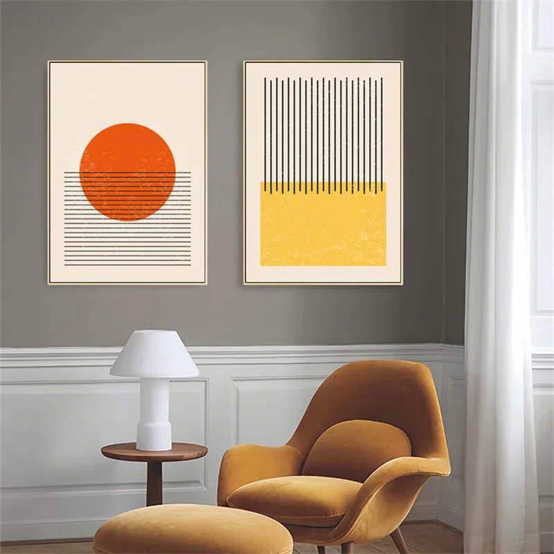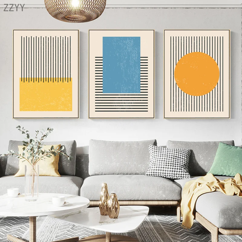 Скандинавский свежий абстрактный Желтый Оранжевый Синий геометрический цвет блоки черно-белые линии холст живопись комната Домашний декор плакаты