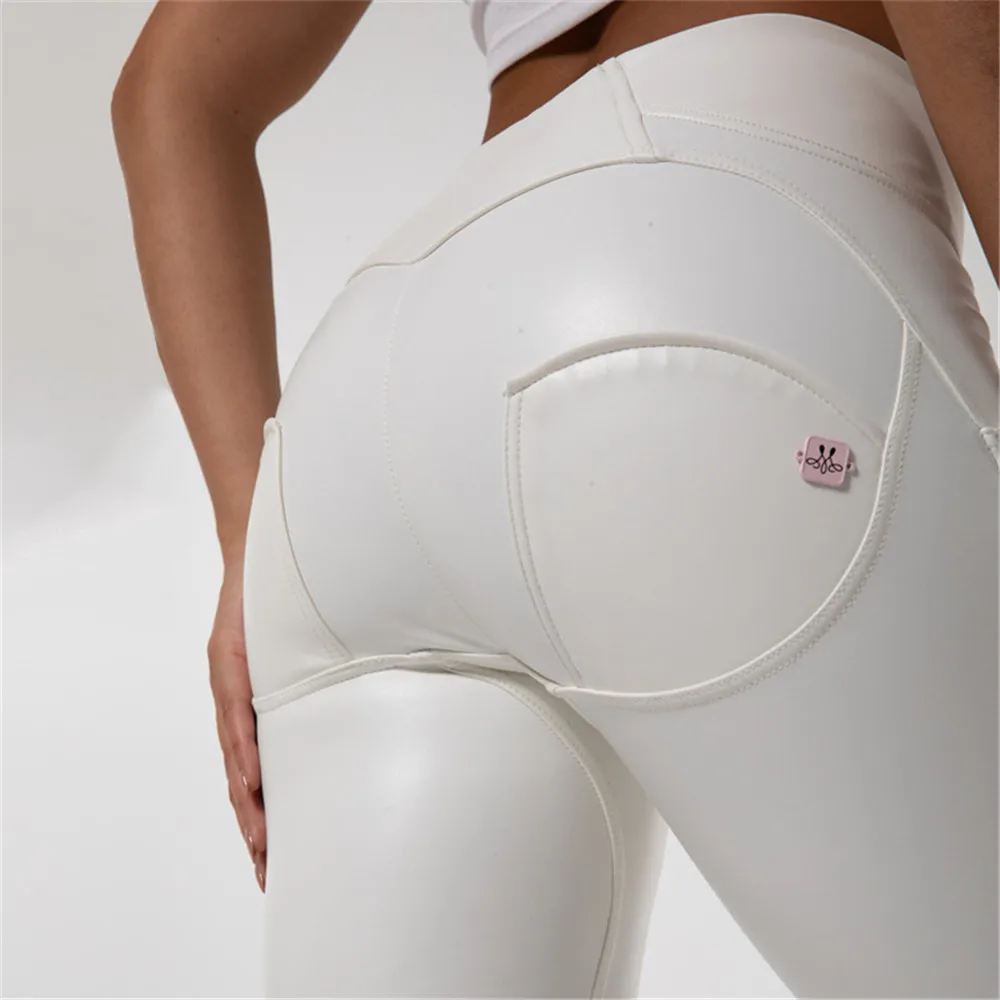 8008HWSWL1-8 = Сияющий белый кожаный штаны для йоги с высокой талией