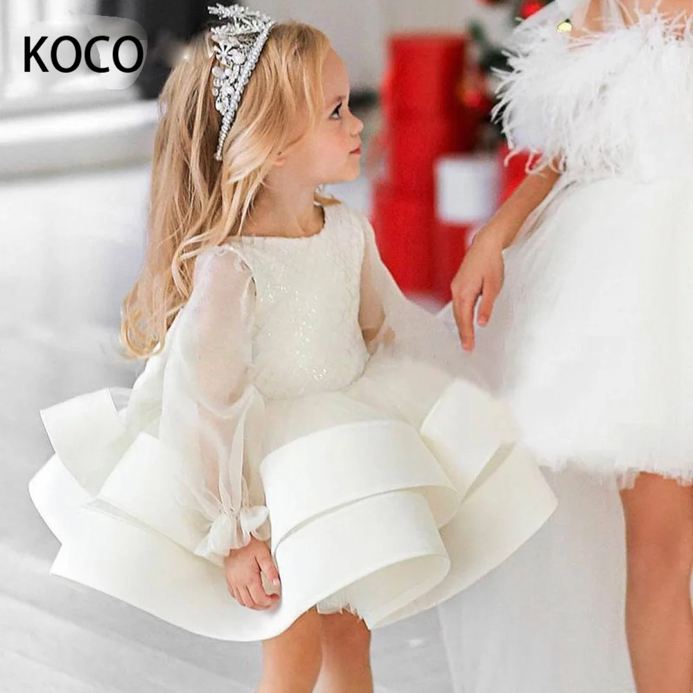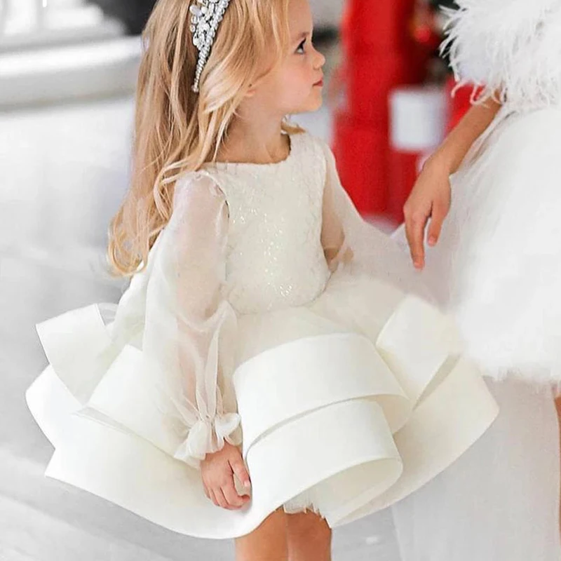 Key WordsJONANY Cute Flower Girl Layered Satin Tulle Princess Long Sleeve Knee Length Birthday Pageant Robe De Demoiselle First Communion
