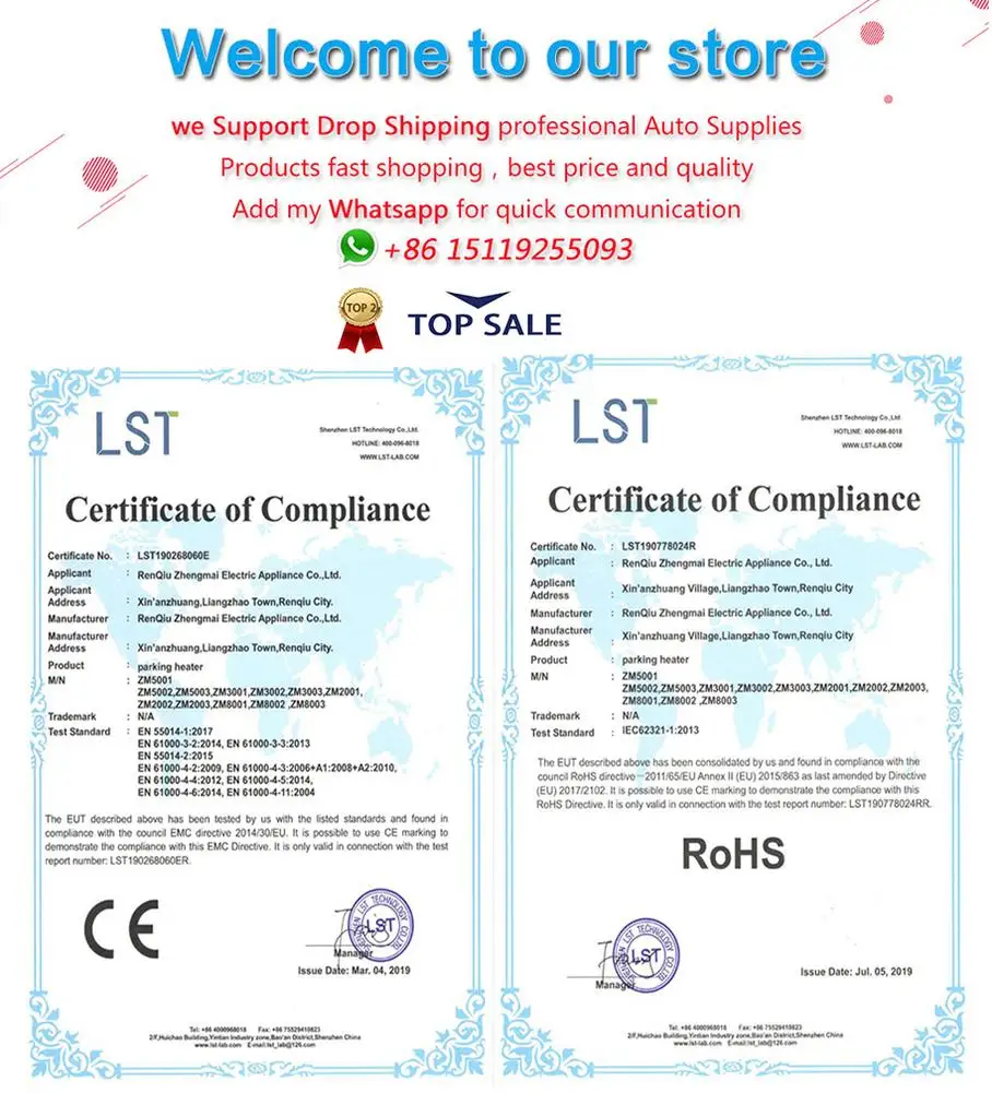 1. Он может обеспечить источник тепла для автомобиля и увеличить температуру внутри автомобиля, чтобы избежать ношения двигателя при низких температурах. Способствует разморозке салона автомобиля, запуску автомобиля и разморозке стекла автомобиля. 2. Низкий уровень шума, шумоподавление, очень низкий уровень шума. Пульт дистанционного управления может дистанционно управлять дизельным нагревателем воздуха для предварительного нагрева и регулировки. 3. Низкое потребление топлива и низкое энергопотребление, подходит для длительной работы. ЖК-дисплей может четко отображать рабочее состояние машины. 4. Компактная структура, легко установить, компактный дизайн способствует использованию в различных узких пространствах, после замены транспортного средства, его можно демонтировать на новое транспортное средство. 5. Подходит для различных типов дизельных механических транспортных средств, таких как автомобили, грузовики, автобусы, RVs, грузовики, кемперы, караваны, строительные транспортные средства, лодки и т. Д. Наслаждайтесь теплом в холодную зиму. Технические характеристики: Материал: металл и пластик Цвет: черный Размер: около 33*10*13 см/12,99*3,94*5,12 дюйма Напряжение: 12 В/24 В (опционально) Мощность: 2KW Топливо: дизельное топливо Полный коэффициент сгорания: 100% Расход топлива (л/ч): 0,2-0.4L Рабочая температура нагревателя: -40 ℃ + 50 ℃ Рабочая температура масляного насоса: -40 ℃ + 40 ℃ Комплект поставки: 1 * нагреватель воздуха на дизельном топливе 1 * Фильтр 1 * впускная труба 1 * выпускная труба воздуховода 1 * выхлопная труба 1 * глушитель 1 * пульт дистанционного управления 1 * Установка частей Сумки 1 * Руководство пользователя Примечание: Для автомобиля с аккумулятором, пожалуйста, выберите напряжение 12 В. Для автомобиля с 2 батареями, пожалуйста, выберите напряжение 24 В (как правило, грузовики или грузовики). Пожалуйста, подтвердите напряжение аккумулятора и выберите для покупки.