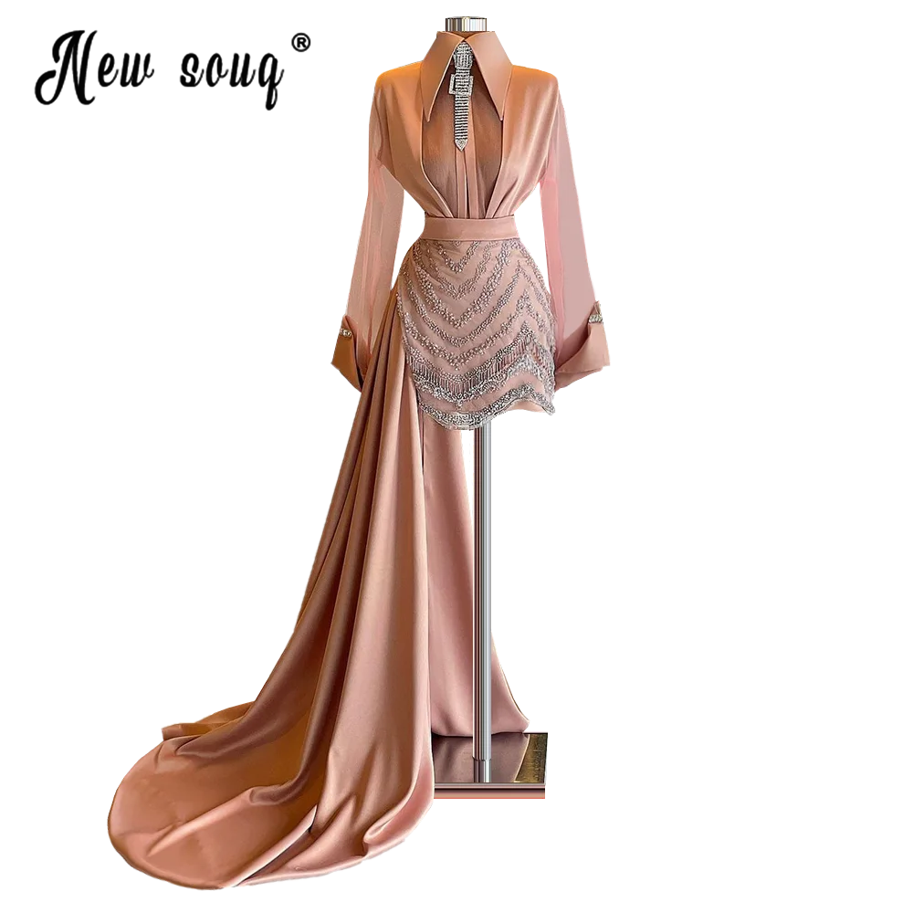 Марокканские вечерние платья с высоким воротником и длинным рукавом...