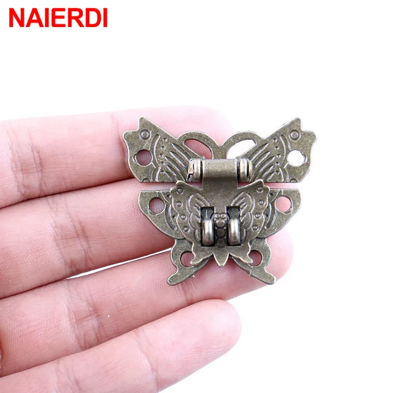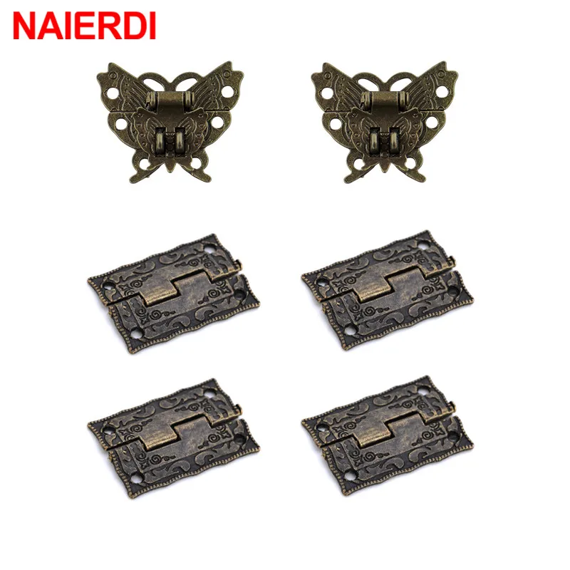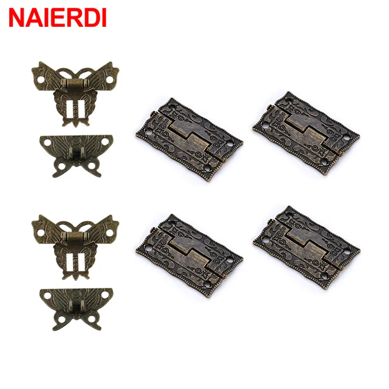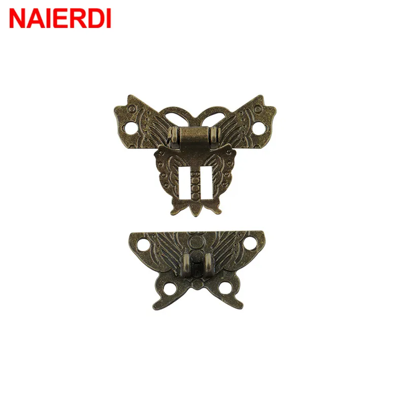 Мебельная фурнитура NAIERDI под античную бронзу, замки с защелкой, переключатель с пряжкой, 2 шт., петли для шкафа, деревянная коробка для ювелирных изделий