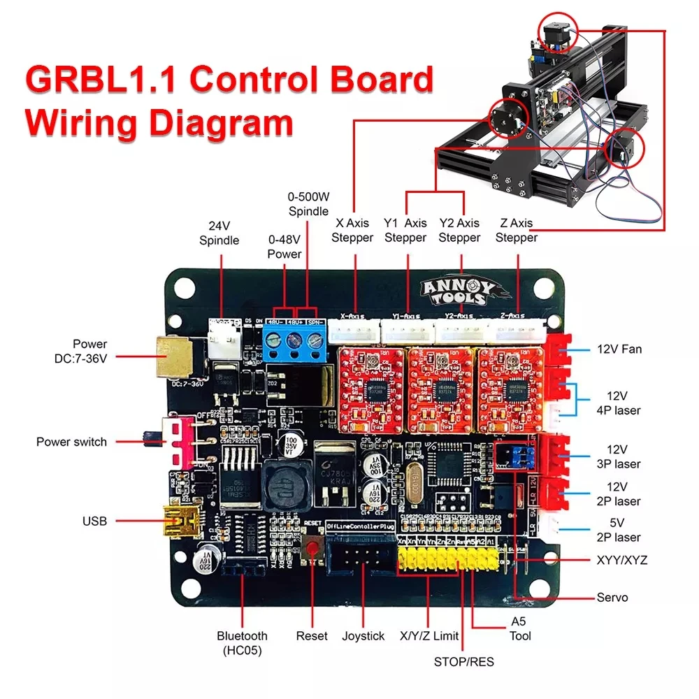 【Обновленная Версия CNC 3018 Pro】 мы делаем это! Новая плата управления-встроенный чип драйвера + фиксированный радиатор + внешний вентилятор + прочный корпус для продления срока службы платы управления, Автономная защита от короткого замыкания, не легко повредить. Пожалуйста, проверьте видео, чтобы узнать, как установить и использовать программное обеспечение.