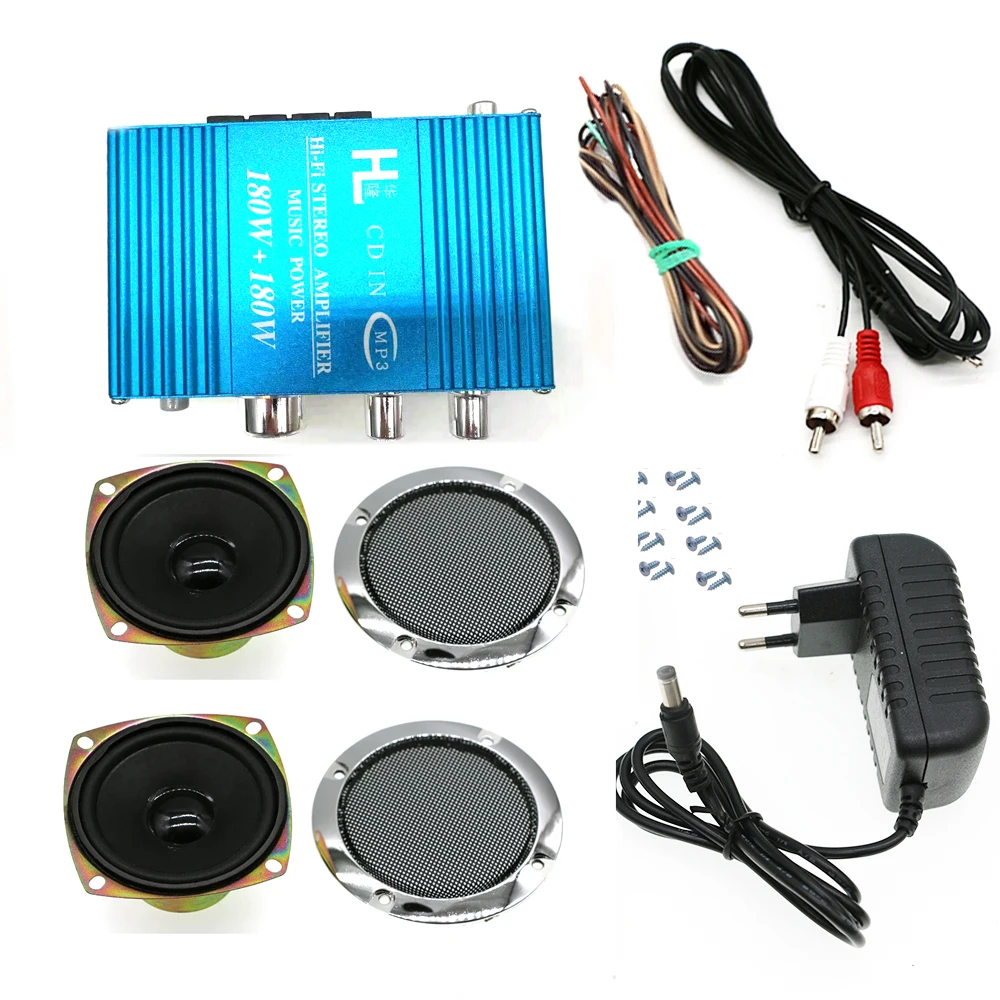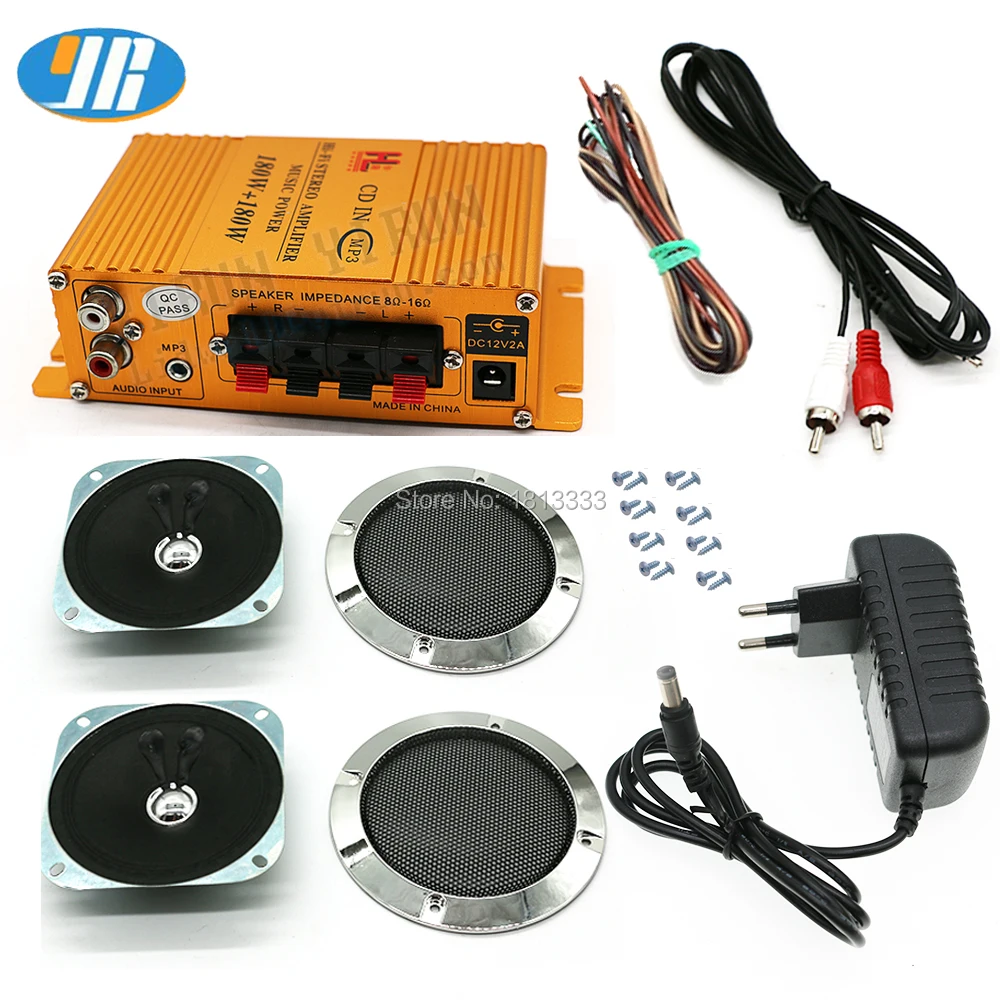 Аркадная игра аудио комплект сделай сам 180 Вт стерео усилитель мощности Светодиодный свет громкость ПК Автомобильный DVD музыкальный плеер 3-дюймовый динамик хромированная решетка