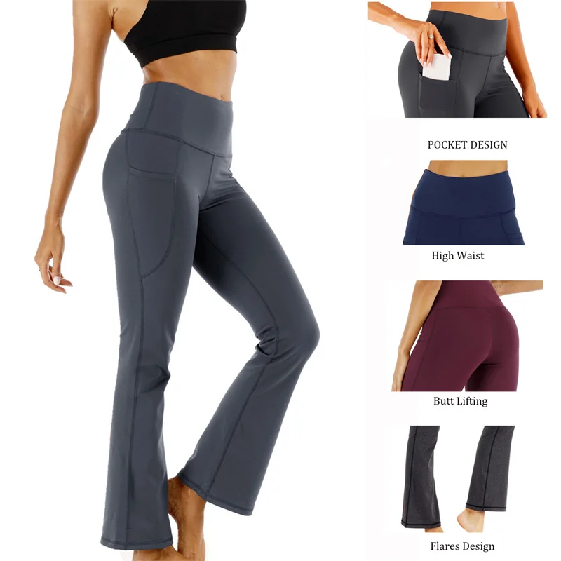 Брюки-клеш Женские с карманами, штаны для йоги с завышенной талией,...