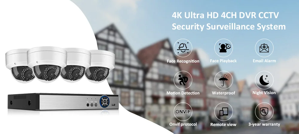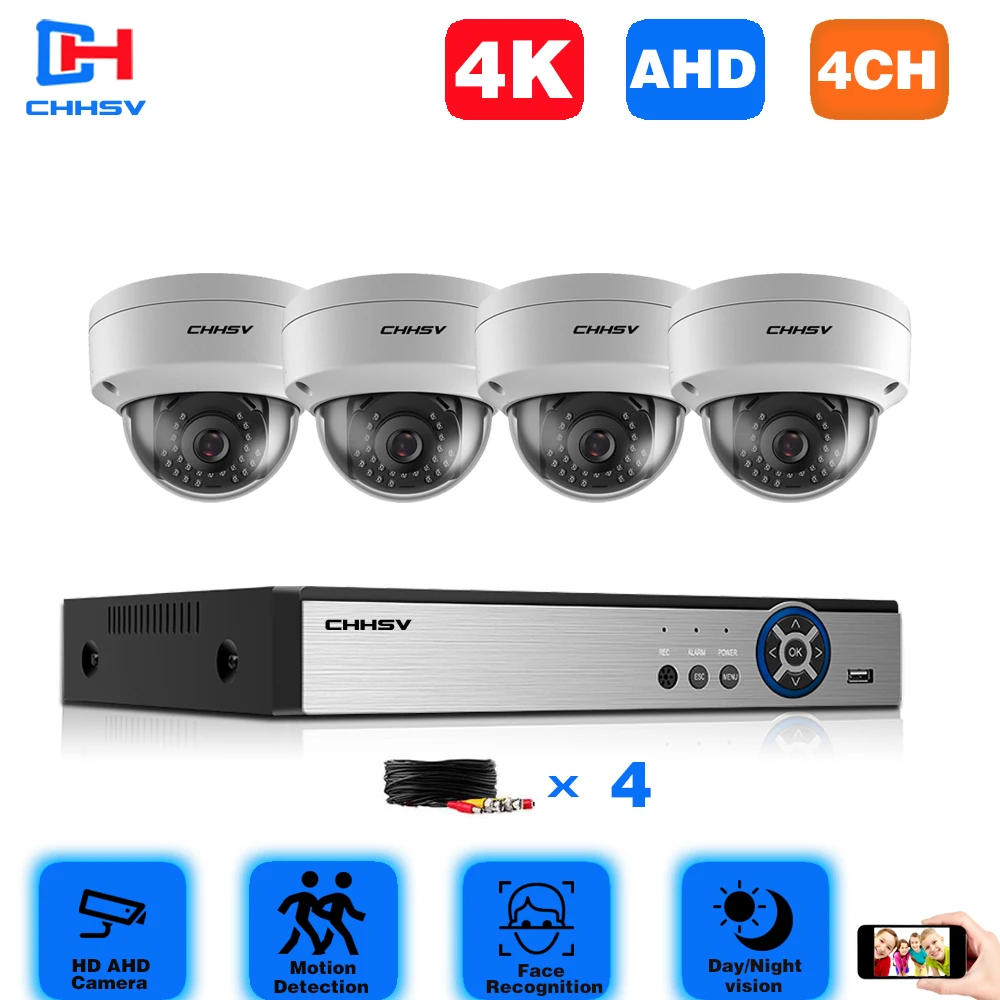 H.265 4K 4CH 8MP домашняя камера система безопасности комплект наружная ИК Водонепроницаемая система видеонаблюдения AHD HDMI запись лица