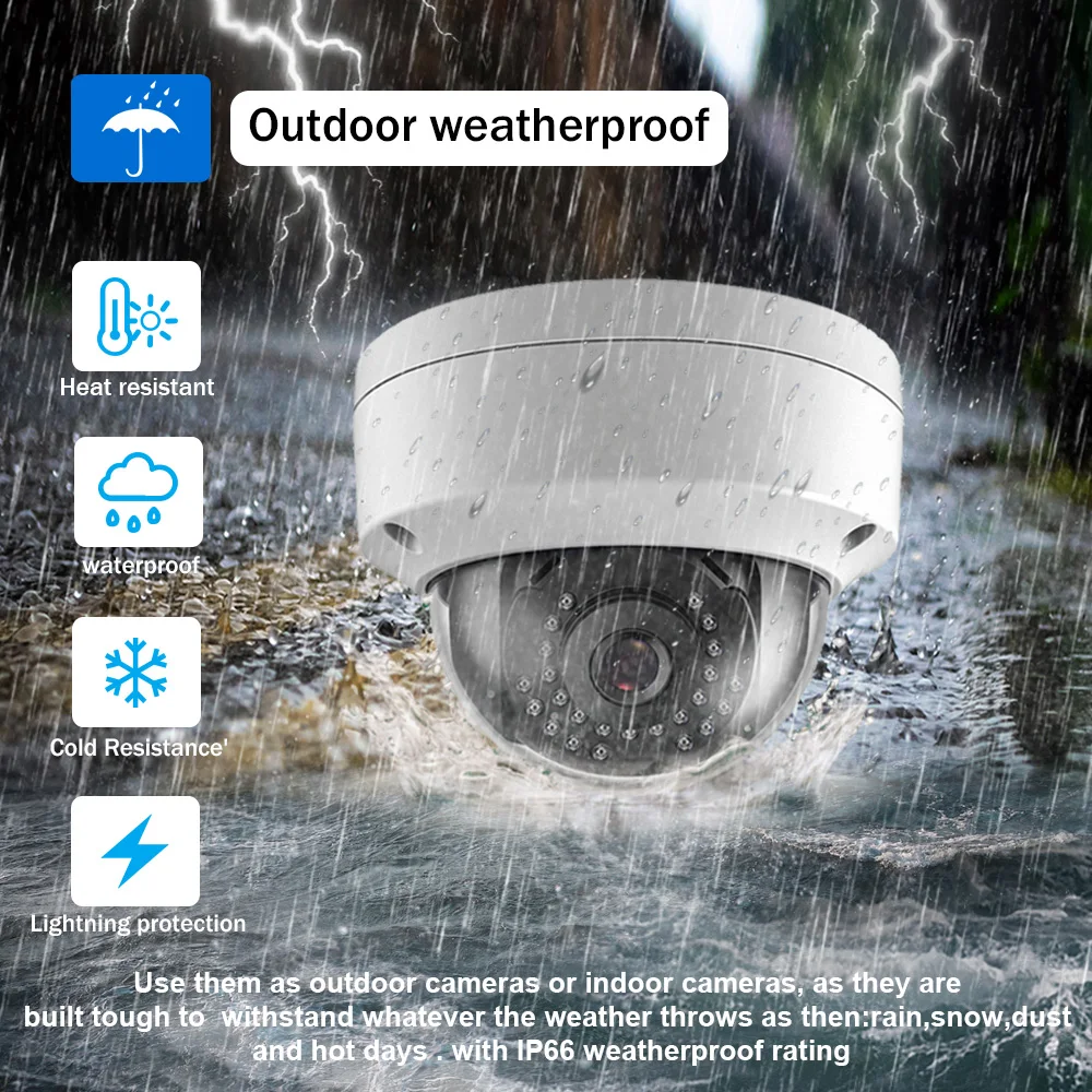 Используйте их в качестве наружных камер или внутренних камер, так как они построены жестко выдерживают любую погоду: дождь, снег, пыль и горячий день с защитой от атмосферных воздействий IP66, И кабели с резьбой через подставку для исключительной защиты "убедитесь, что вы можете ответить на их производительность, день в день.Наша камера имеет сверхпрочный металлический корпус, профессиональный IP66, устойчивый к атмосферным воздействиям, обеспечивая стабильную производительность как внутри, так и снаружи.