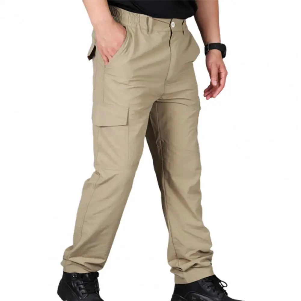 Повседневные брюки-карго с несколькими карманами, однотонные дышащие брюки с эластичным поясом для кемпинга, уличная спортивная одежда