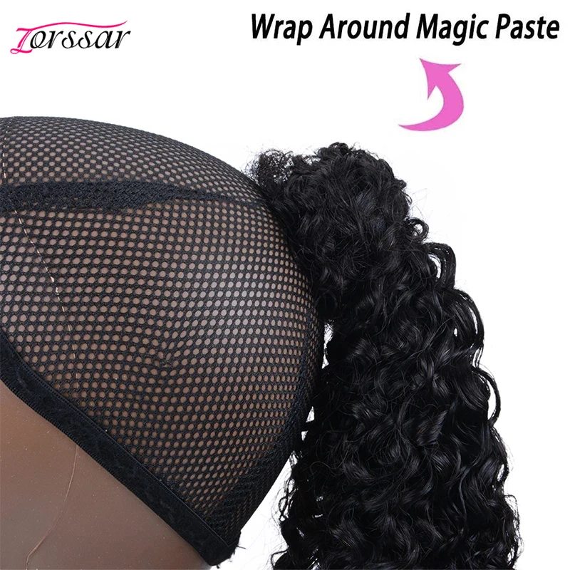 Кудрявые Волнистые накладные человеческие волосы для конского хвост...