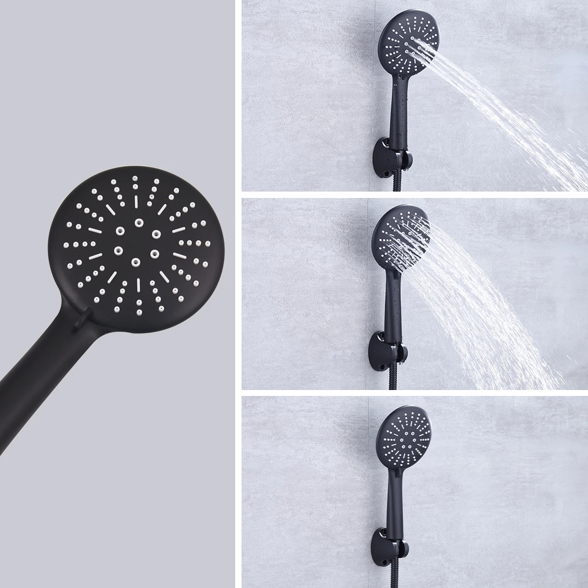 【 3 режима душевая головка 】имеет 3 настройки, которые обеспечивают отличную производительность. Переключение между настройками распыления невероятно простое, вы можете переходить между дождевым ливнем, полностью распыляемым массажем, быстрым массажем
