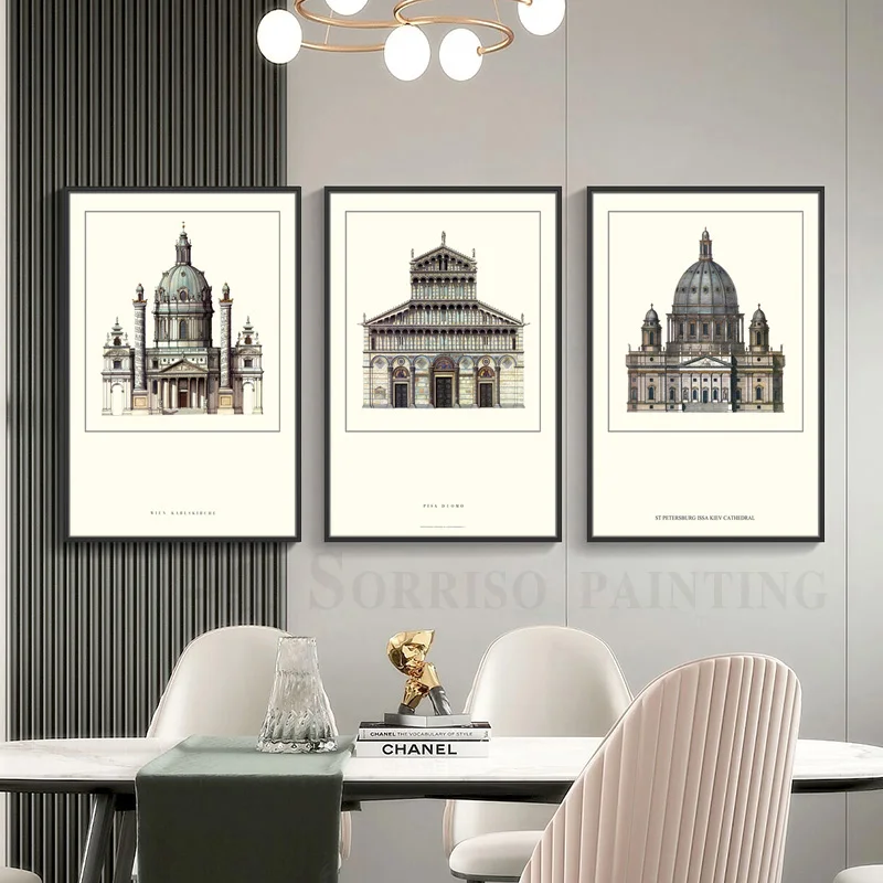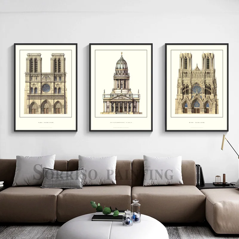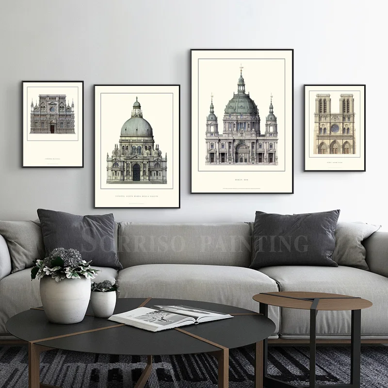Европейская ретро классическая церковная архитектура здание холст живопись плакаты и принты настенные картины для гостиной домашний декор