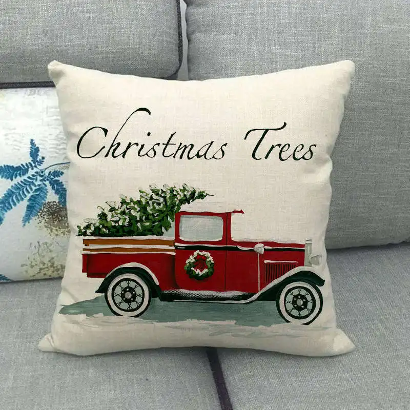 Рождественское украшение, наволочка из хлопка и льна с принтом в виде автомобильной елки, наволочка с рождественскими украшениями для дома, вечеринки, дивана