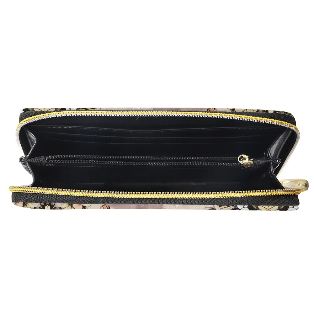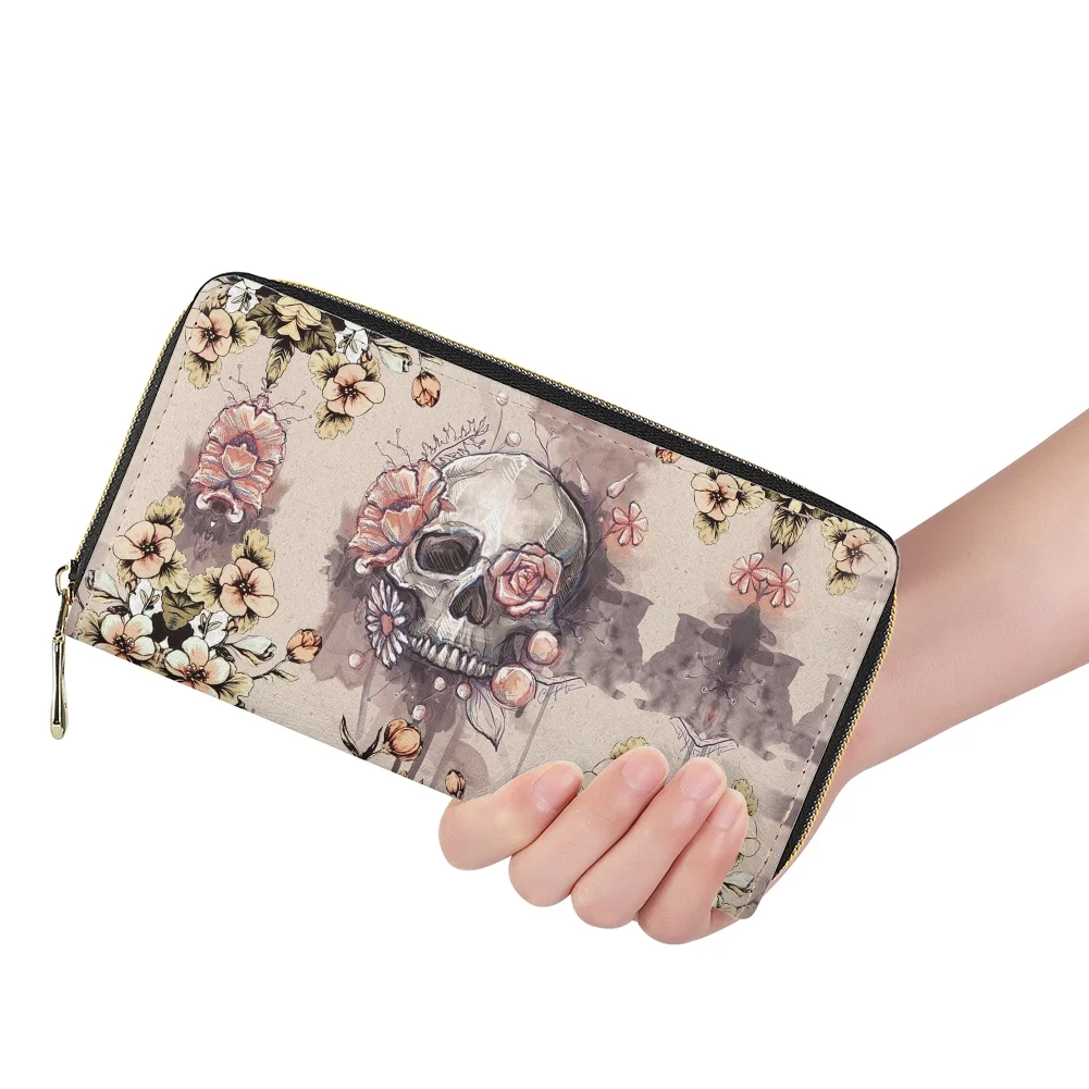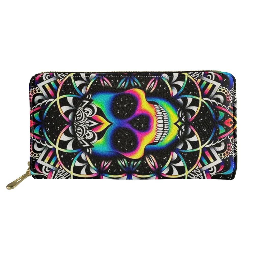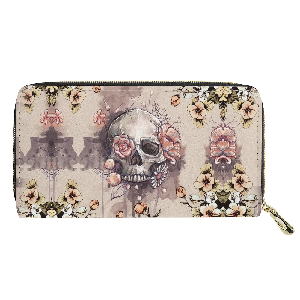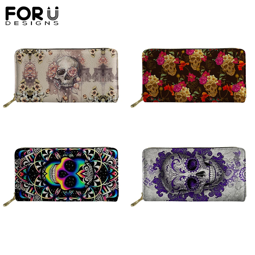 FORUDESIGNS Pu женский кошелек готический череп с цветочным принтом длинный кожаный женский клатч кошелек для денег телефона женский кошелек