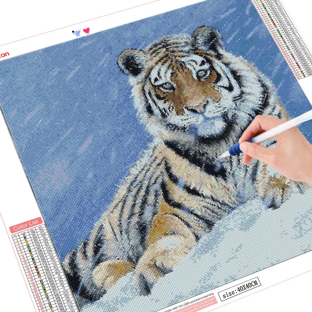 HUACAN полноразмернаякруглая алмазная живопись 5d мозаика с тигром зимняя Алмазная вышивка сделай сам Животное ручной работы подарок домашний декор