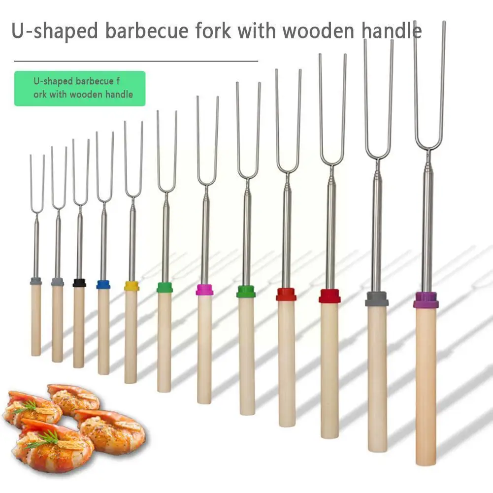 1 шт. Антикоррозийная Стальная вилка для барбекю Регулируемая деревянная ручка Выдвижная палка для запекания зефира телескопическая жаровня для барбекю тоже H7T8