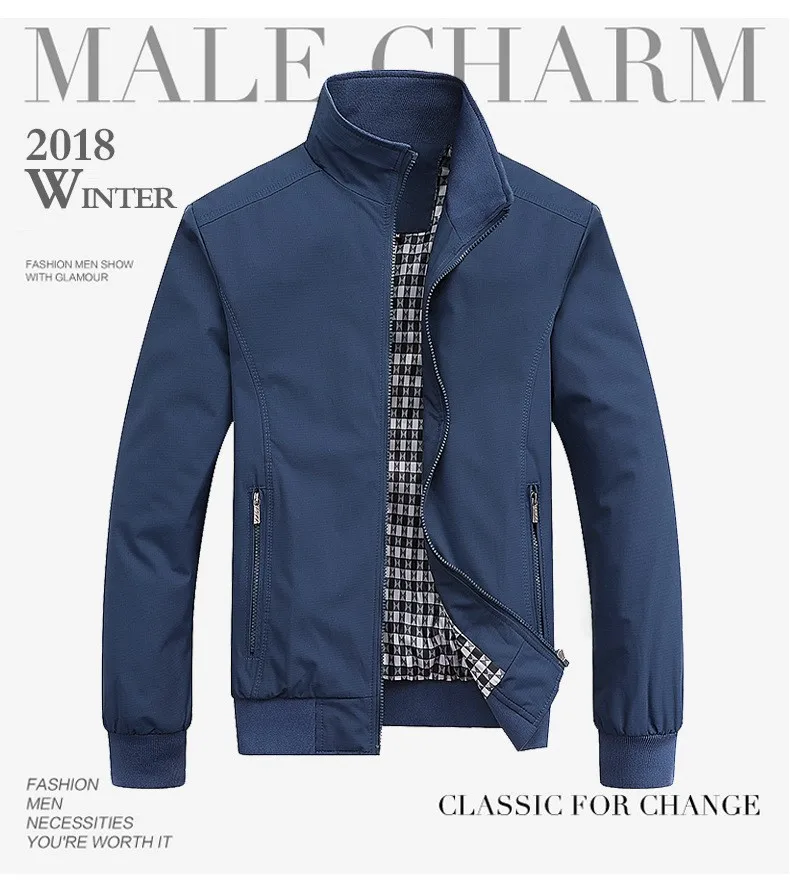 Сезон весна-осень; Мужская куртка-бомбер Повседневная Рабочая стойк...
