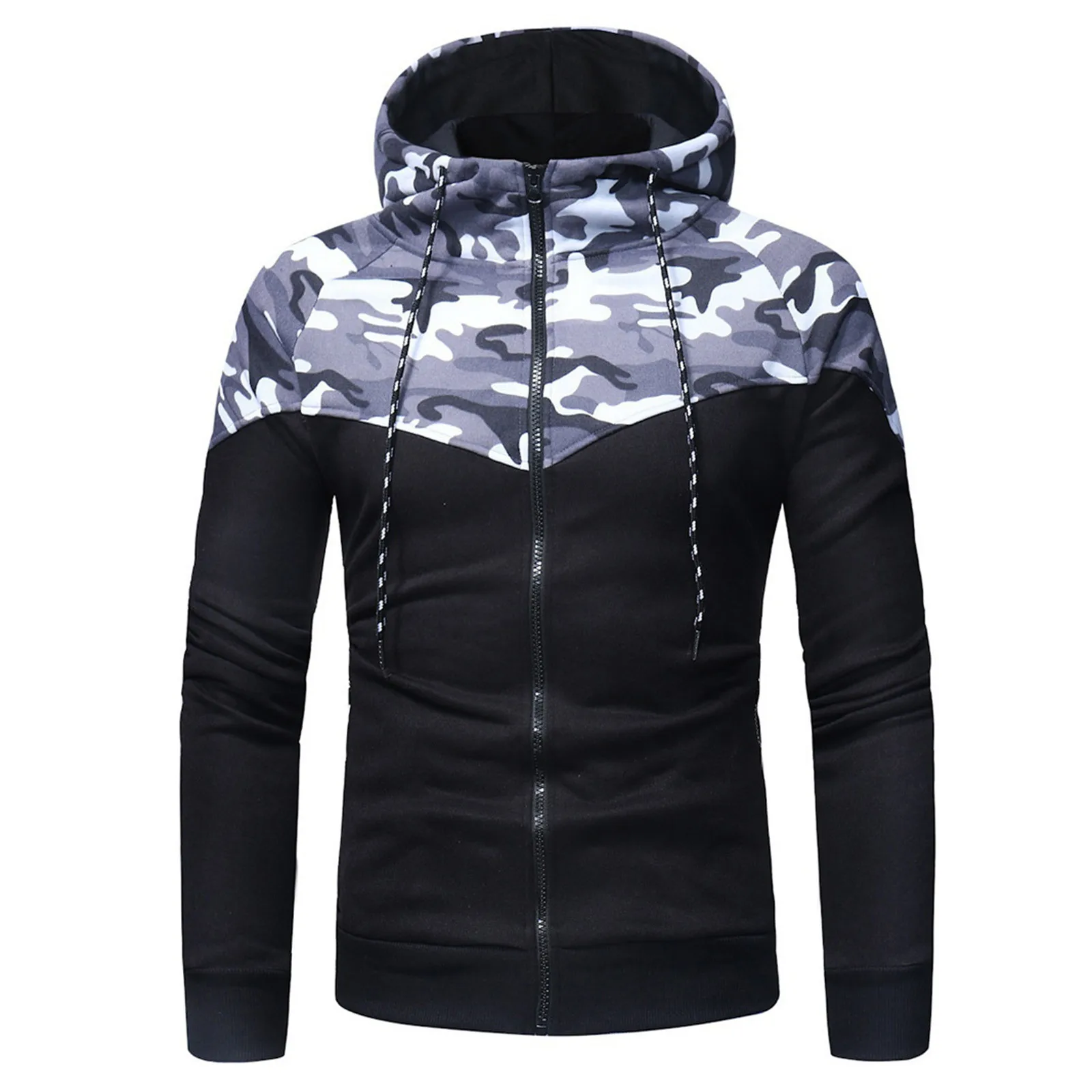 Размера плюс мужские камуфляжные спортивные куртки в стиле пэчворк, толстовка на молнии, дышащие пальто с карманами для фитнеса, верхняя одежда, топы, уличная одежда