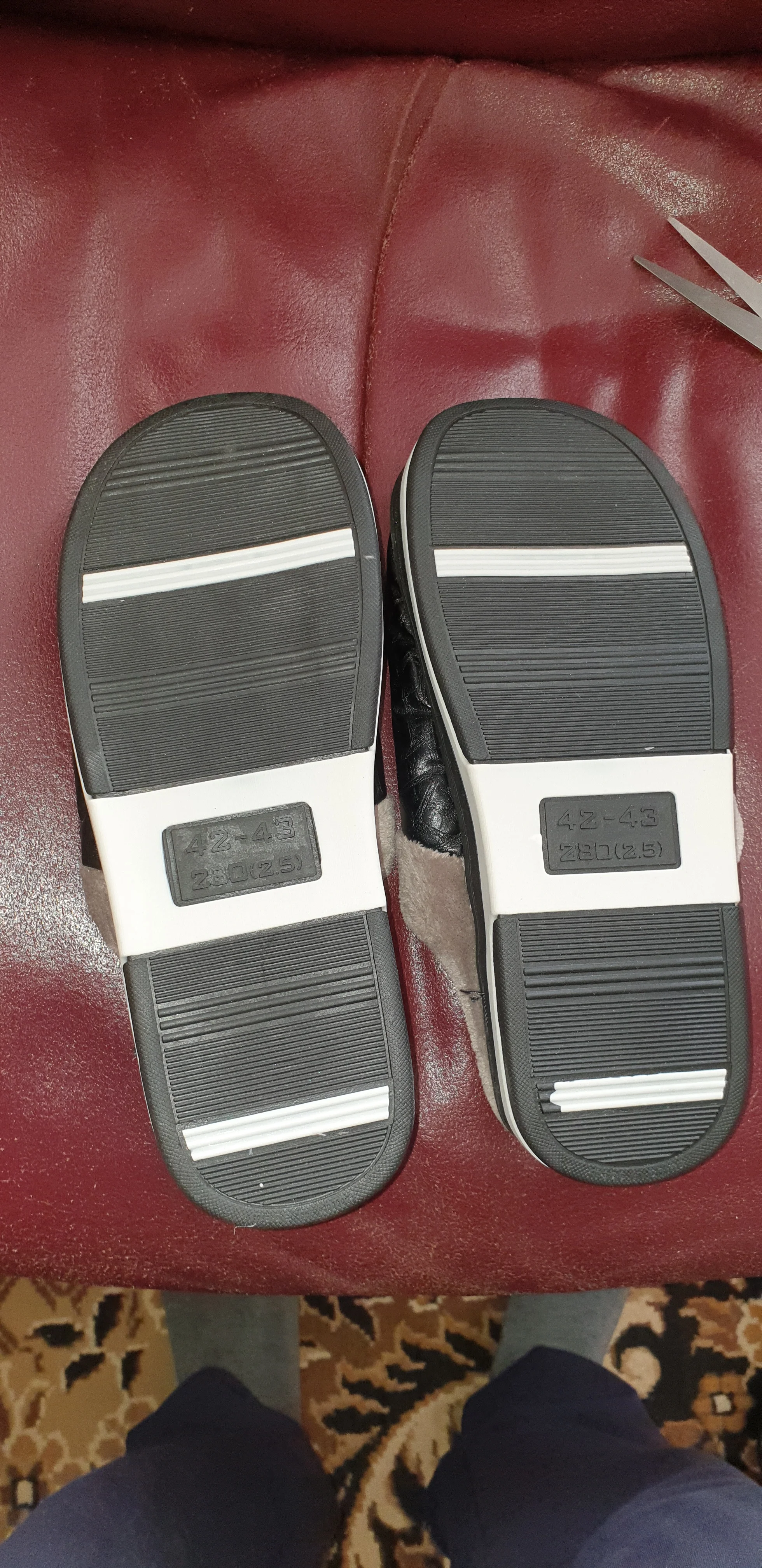 Тапочки чудесные. Муж доволен. Очень приятный тёплый мех. На 43 р купила 47-47р. и точно подошли на 43р. Так они шьют тапки и ставят неверные размеры. Поэтому 46-47рр у них идут на 43 размер. Поэтому будьте предельно внимательны и смотрите отзывы покупателей.