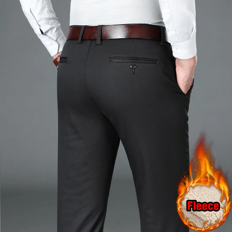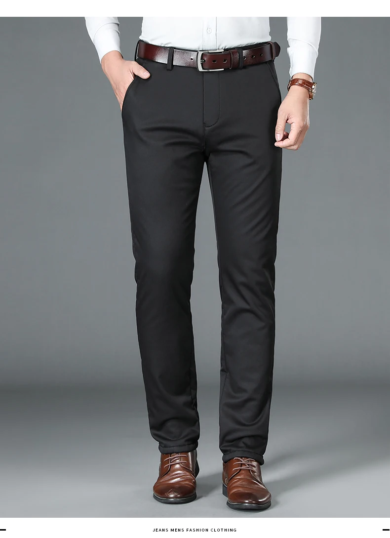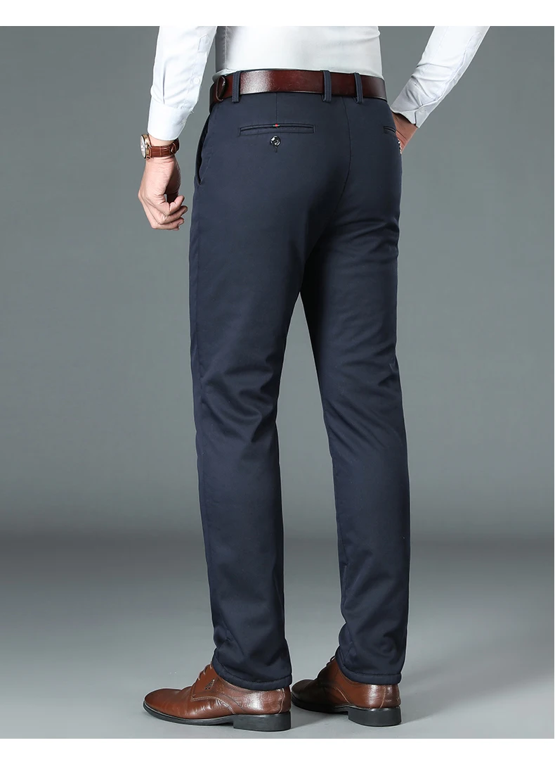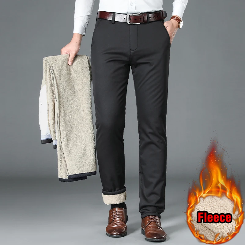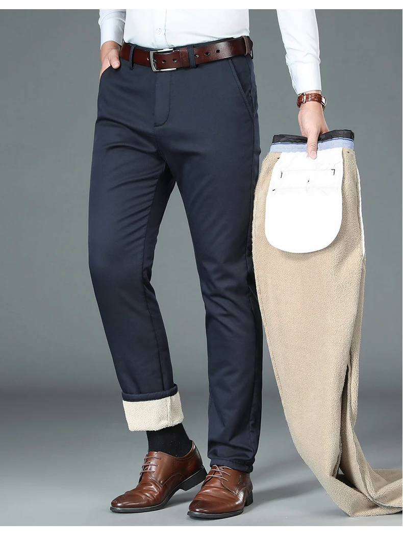 2021 зимние мужские теплые повседневные штаны с подкладкой из овечьей шерсти, модные деловые плотные Стрейчевые брюки, Мужская брендовая одежда