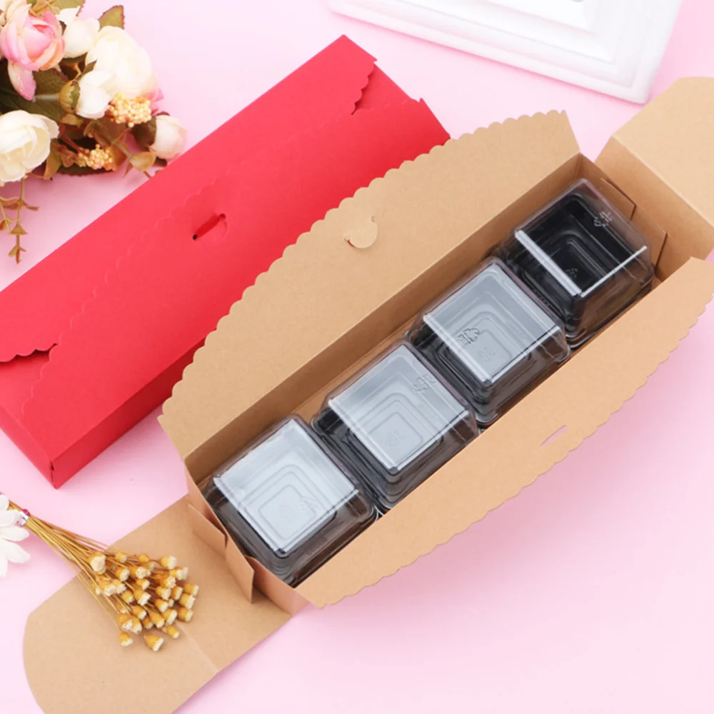 20 шт. упаковочная коробка для 4-полостного Клюквенного торта Контейнер для лунного торта подарочные коробки для макарон для домашнего десертного магазина (коричневый)