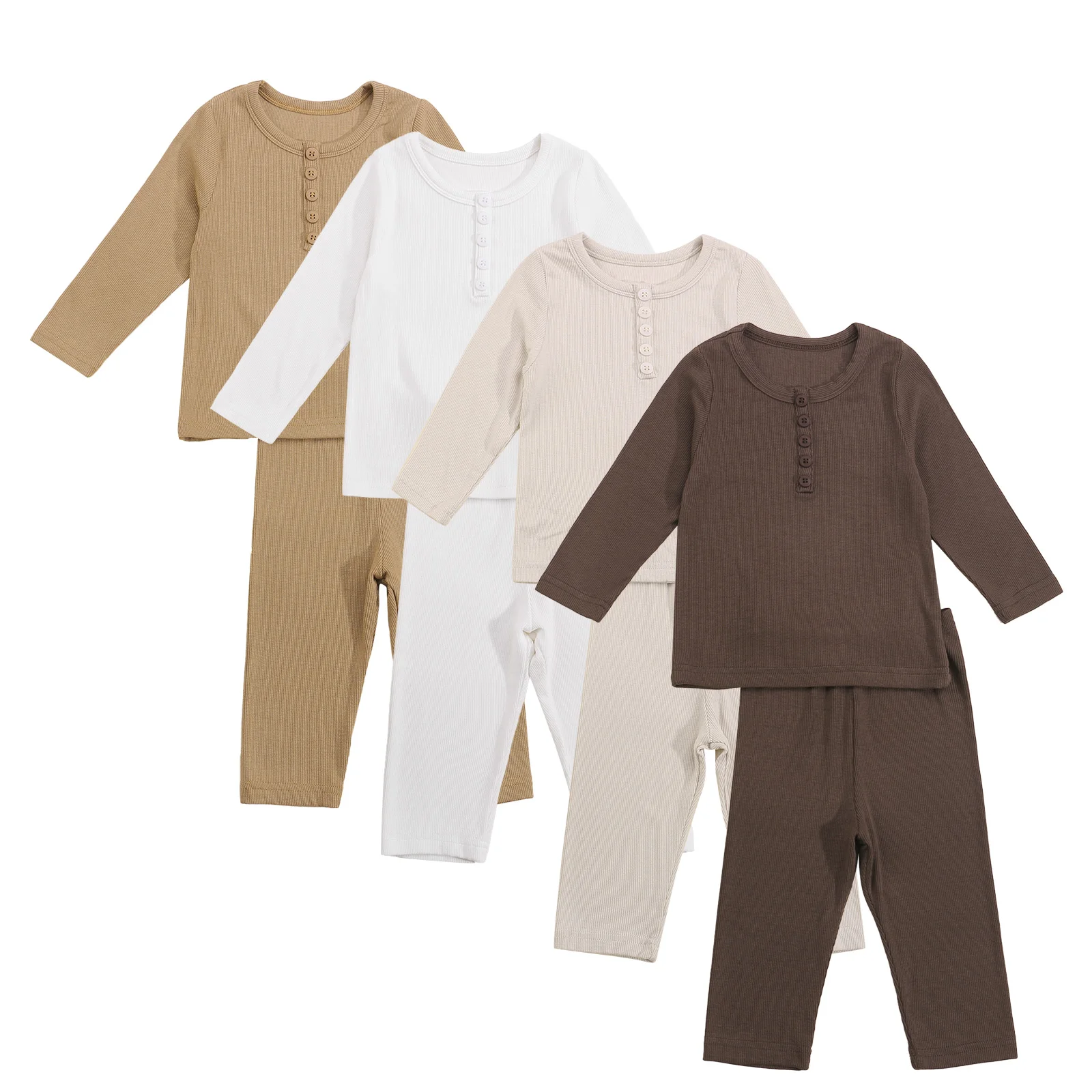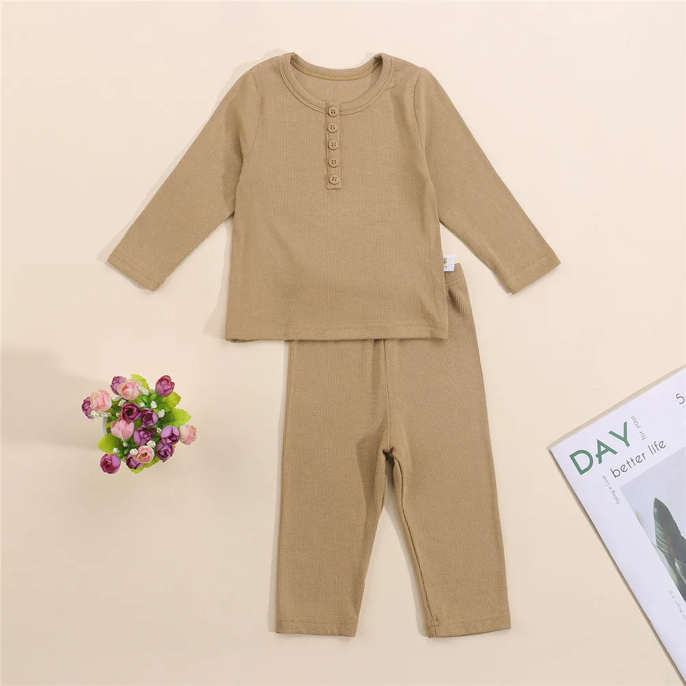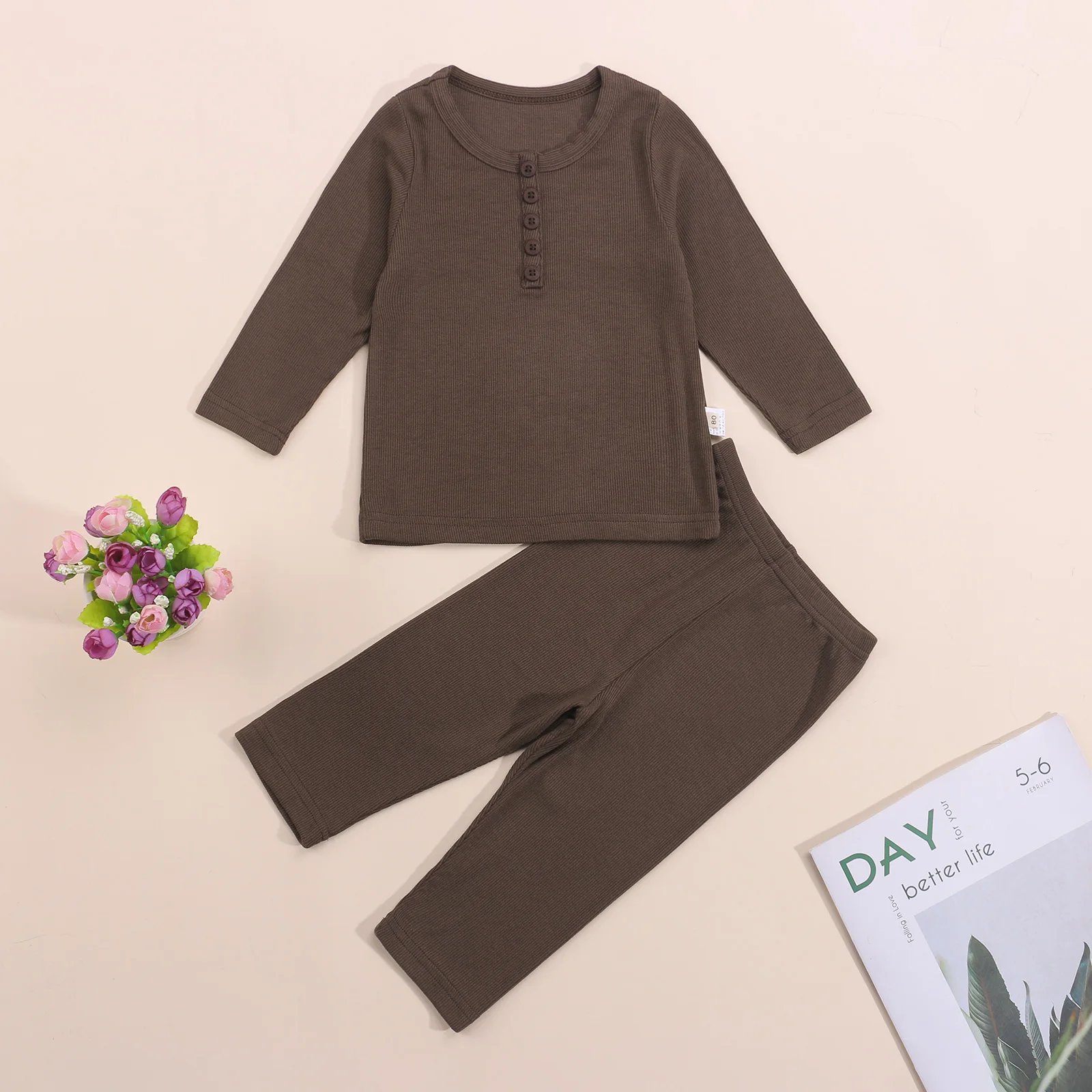 Пижамный комплект для малышей, 2 шт., топы с длинным рукавом, круглым вырезом, пуговицами спереди и брюки, Женский комплект