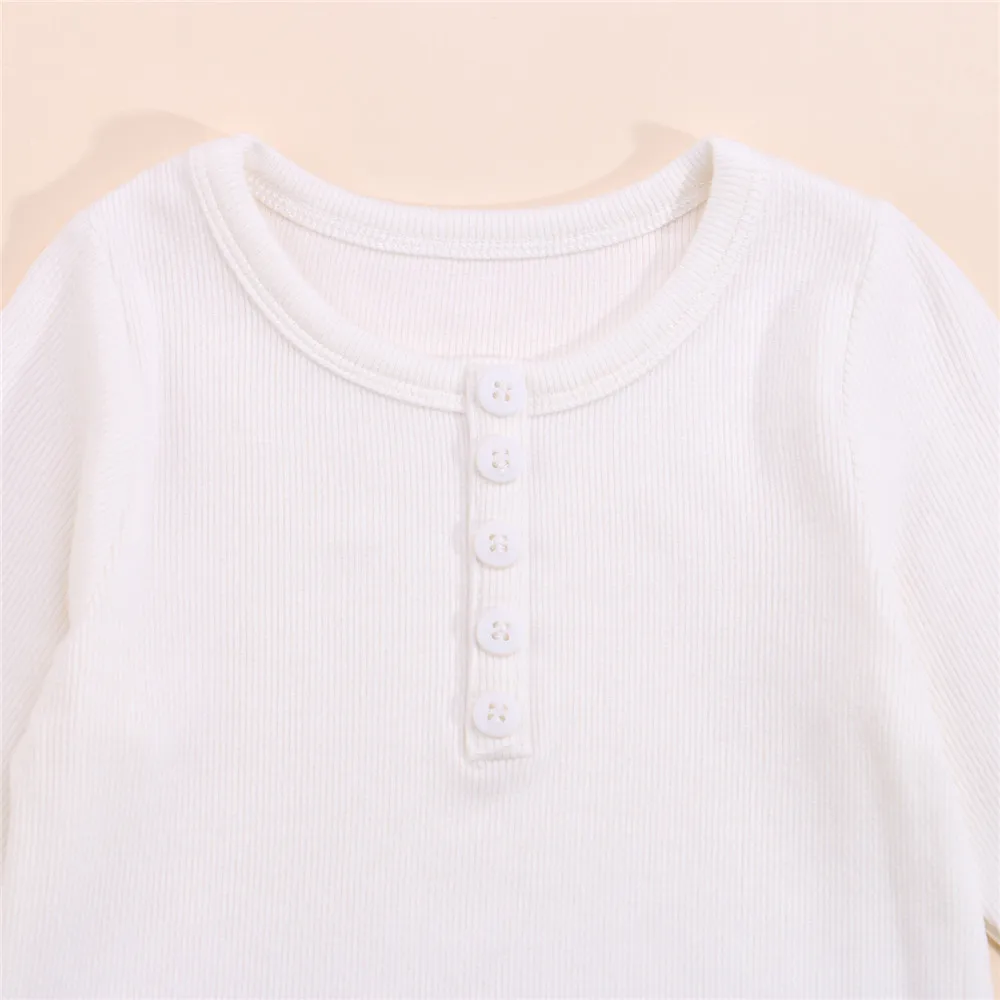 Осенняя одежда из 2 предметов для малышей, комплект из топа с длинными рукавами и круглым вырезом на пуговицах + штанов